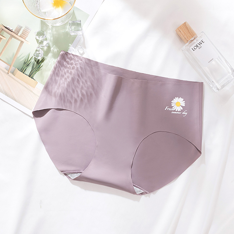 공장 직접 여름 아이스 실크 원활한 높은 탄성 섹시 코튼 가랑이 데이지 통기성 허리 브리프 숙녀스토어 가기