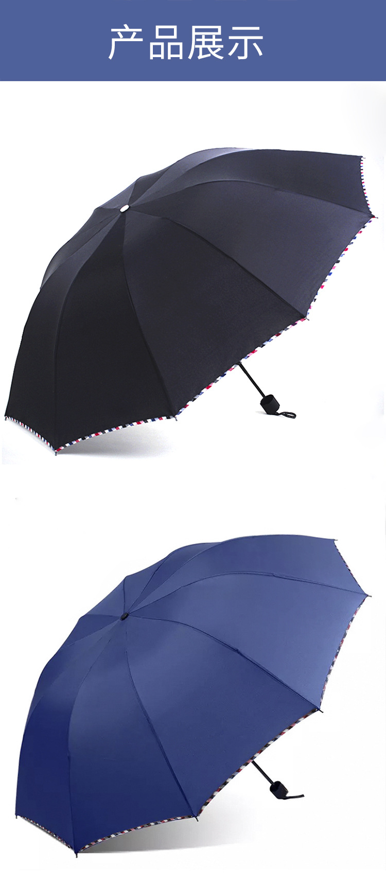 우산 10 골 검정 고무 더블 영업 우산 3 개 접는 우산 인쇄 선전 우산 로고 선물 우산 도매