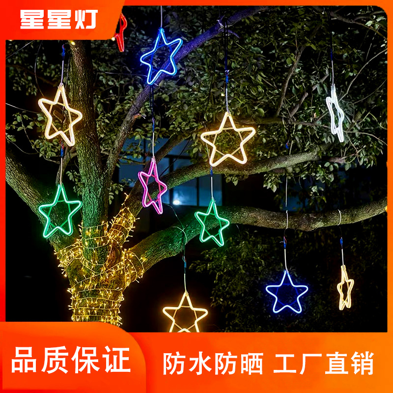 새해 봄 축제 장식 조명 별 조명 다채로운 조명 플래시 조명 문자열 조명 석고 야외 방수 다섯개 별 조명 매달려 나무 조명