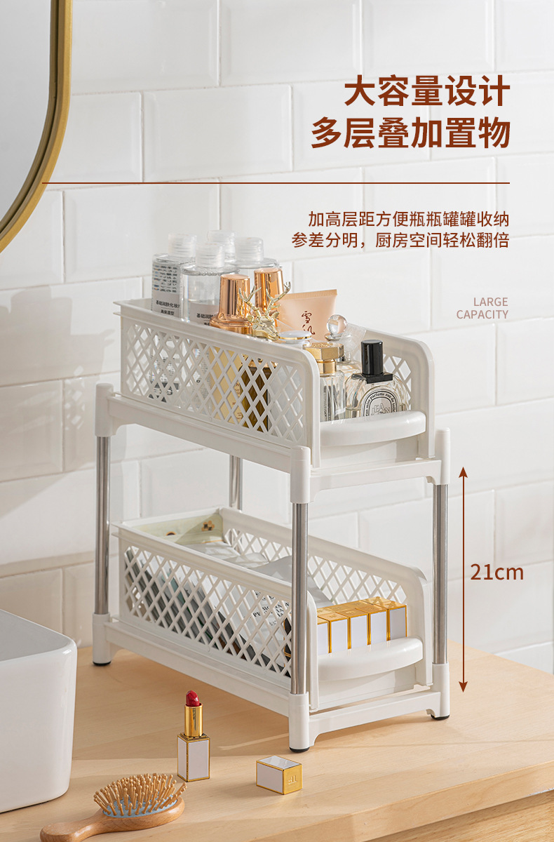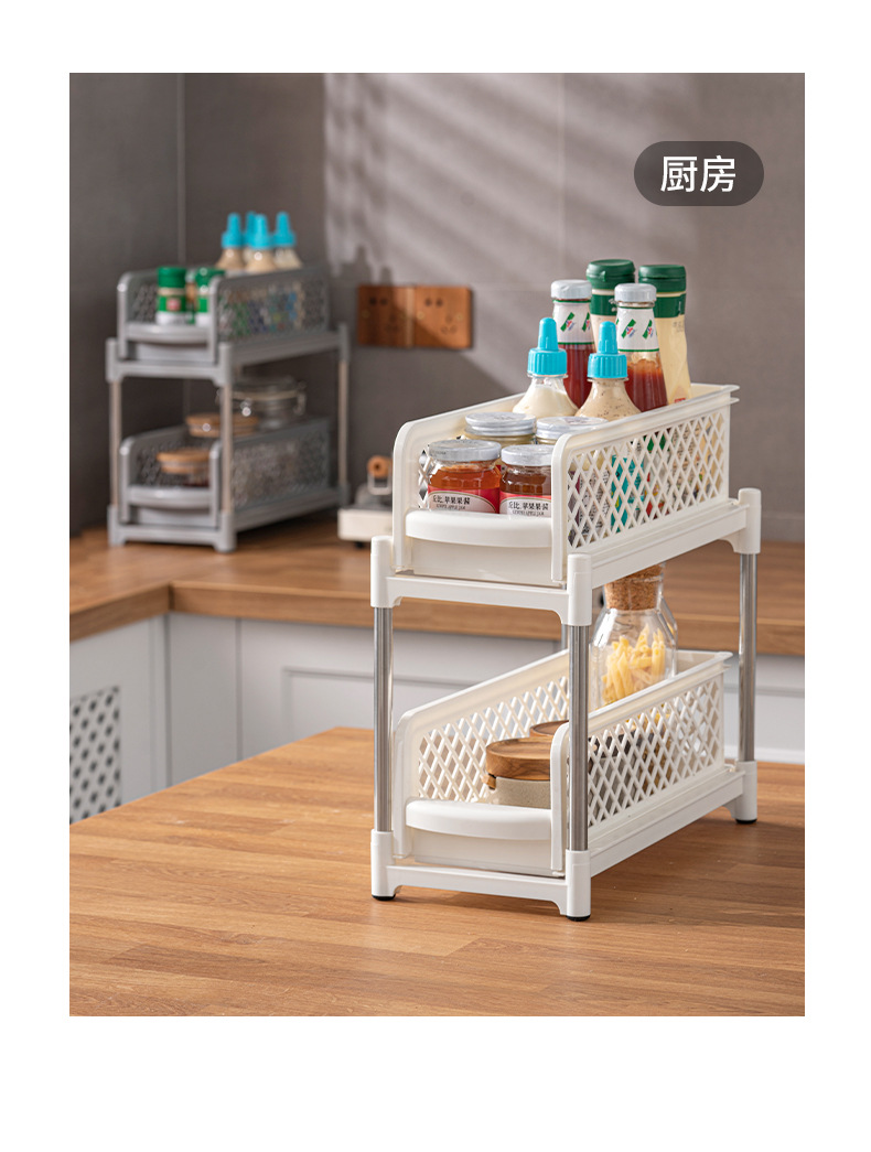 신형 이중층 이동식 수납 선반 플라스틱 슬라이드형 주방 수납 데스크탑 조미료 선반 제조업체 도매스토어 가기