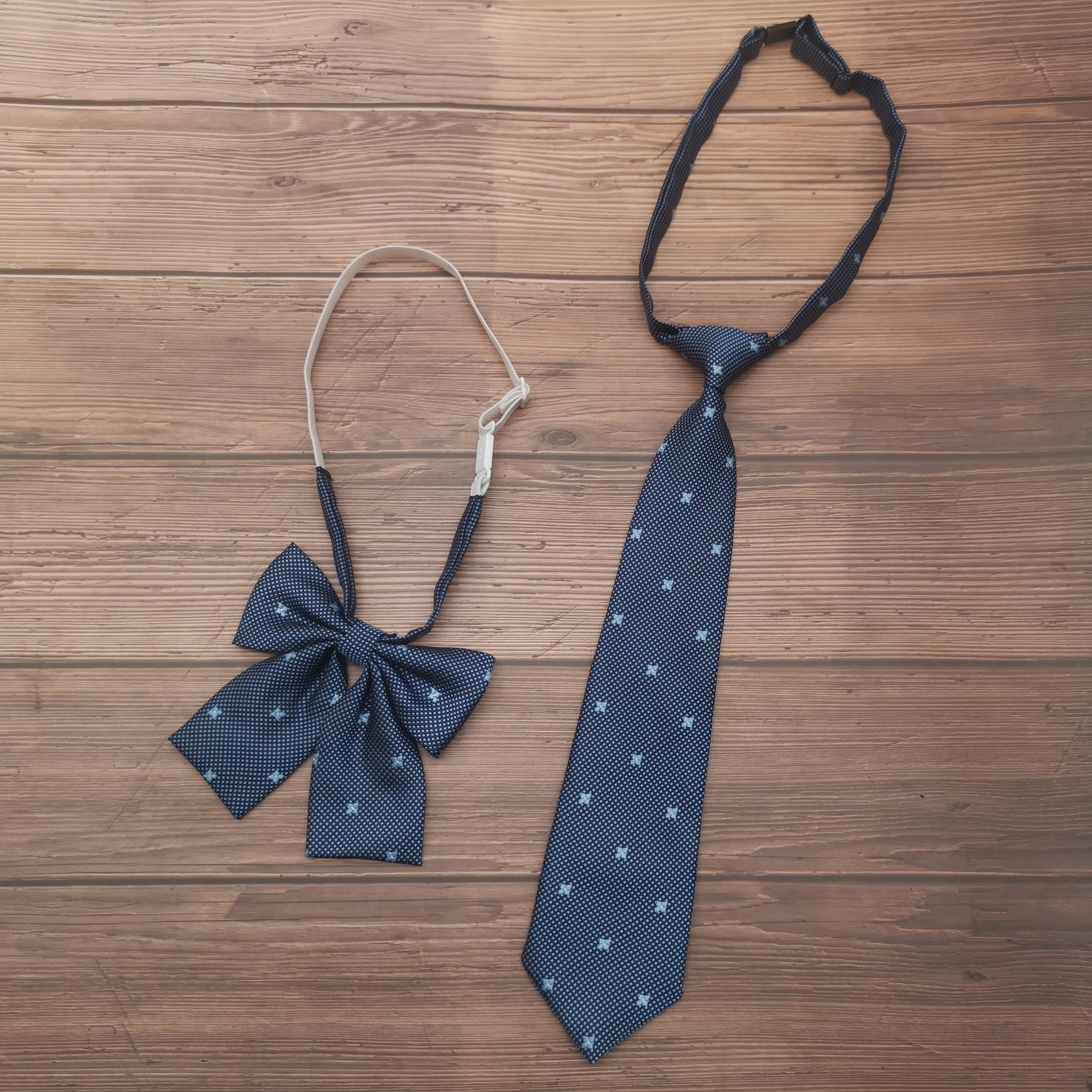 블루 도트 자수 작은 꽃 jk 작은 넥타이 게으른 세트 남성 대학 스타일 넥타이없는 여성의 복고풍 장식 패션스토어 가기