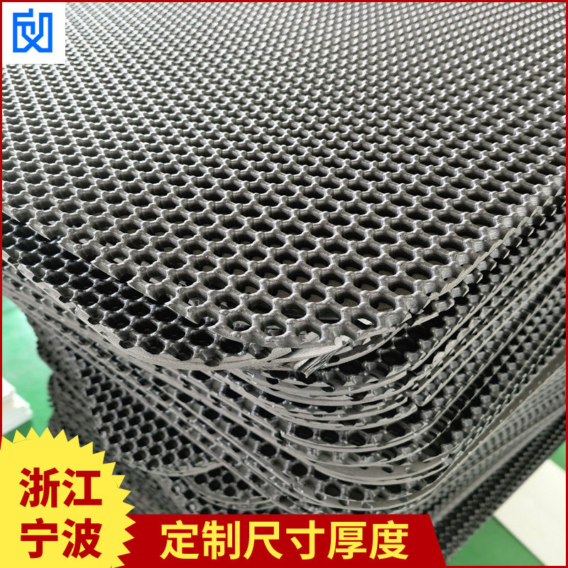 本厂拥有猫砂垫材料生产、加工、缝合一整套工序。生产的猫砂垫原材料有六边形和菱形两种,六边形是使用最多的形状。材料密度均匀品质稳定。