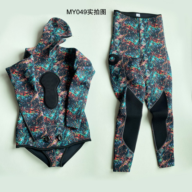 3mm 다이빙 세트 스플릿 투피스 다이빙 세트 위장 낚시 세트 따뜻한 야외 다이빙을 세트 머리카락