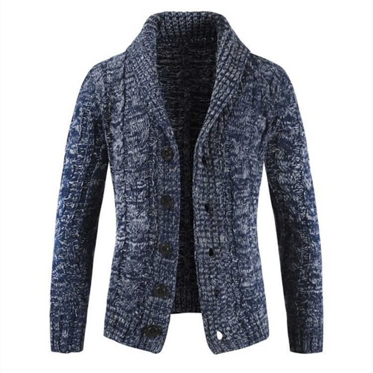 2023 봄과 가을 크로스 보더 전자 상거래 남성용 두꺼운 니트 카디건 재킷 패션 두꺼운 긴 소매 옷깃 스웨터스토어 가기