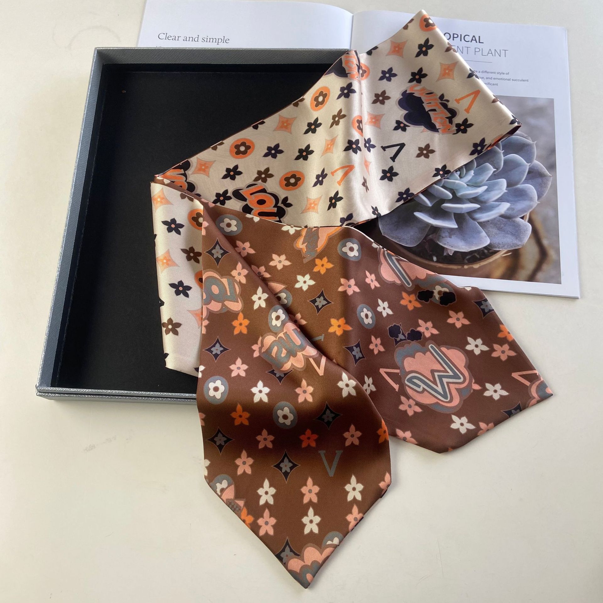 한국 모조 실크 긴 스카프 여자의 큰 브랜드 전문 장식 작은 스카프 인쇄 리본 넥타이 스카프
