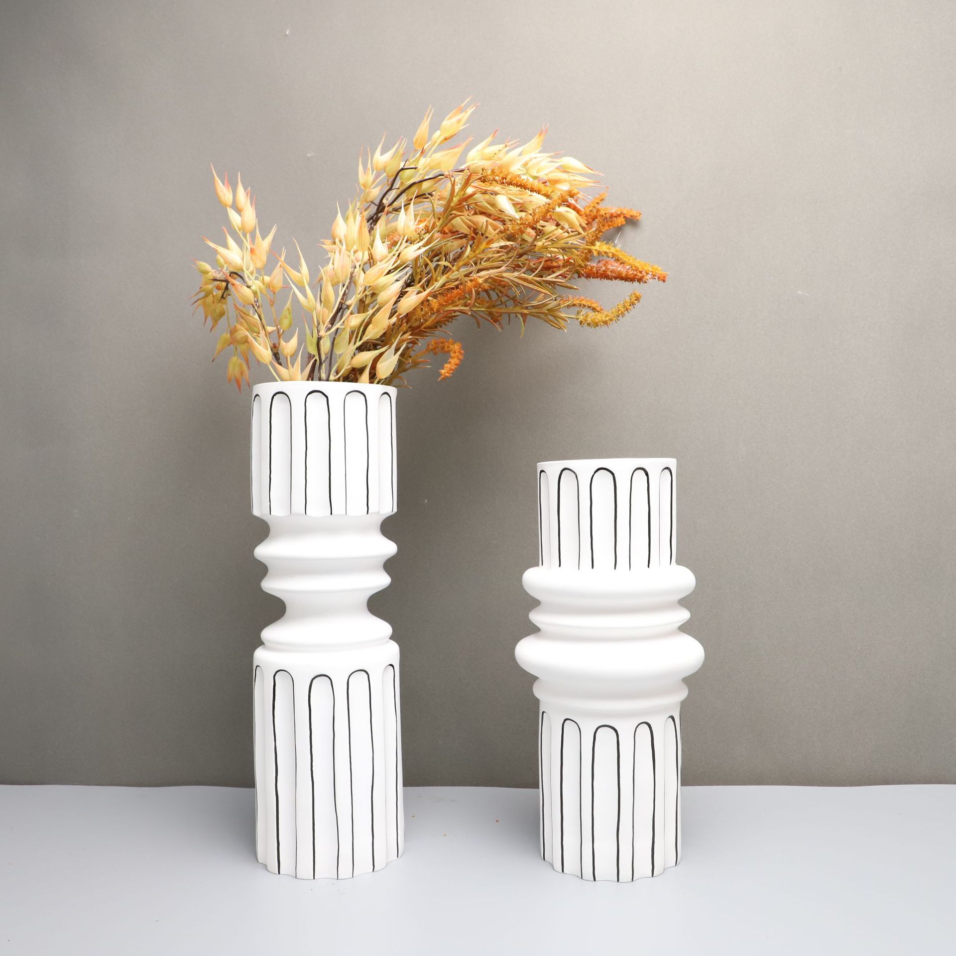 가정 장식 호텔 입구 연구 거실 꽃병 공예품을위한 북유럽 미니멀리스트 줄무늬 나선형 꽃 장식품