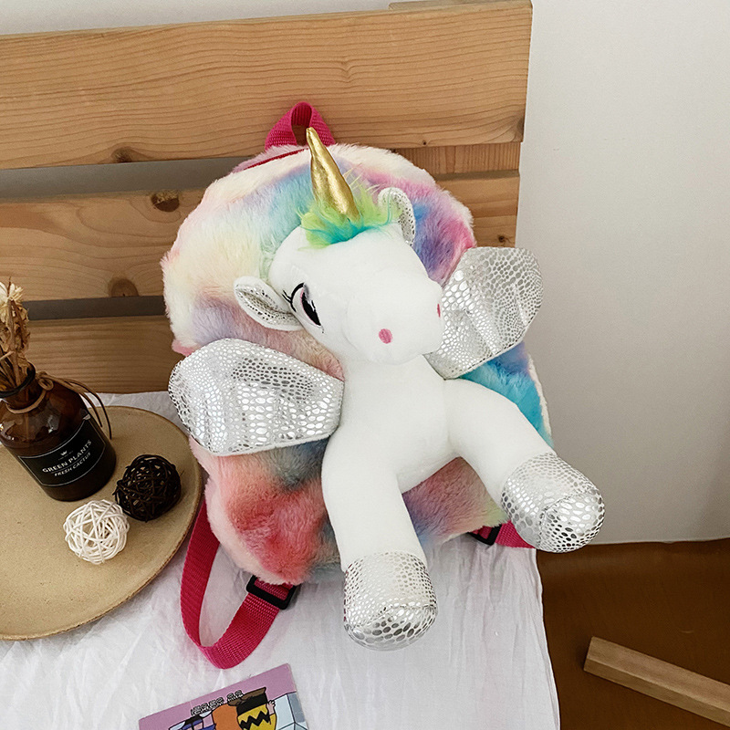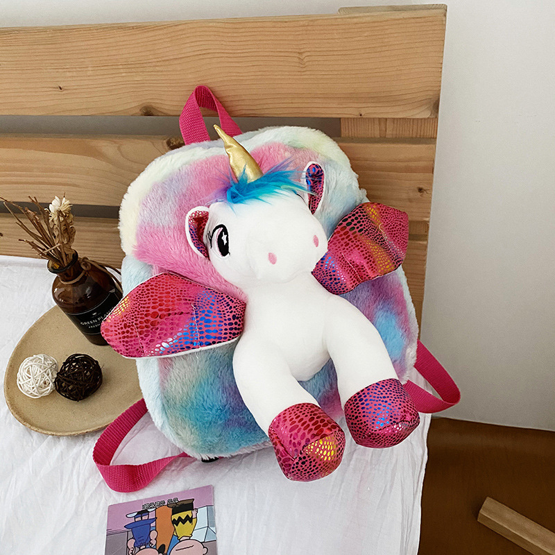 2021 새로운 색상 유니콘 배낭 어린이의 귀여운 만화 유니콘 봉제 책가방 소녀 배낭스토어 가기