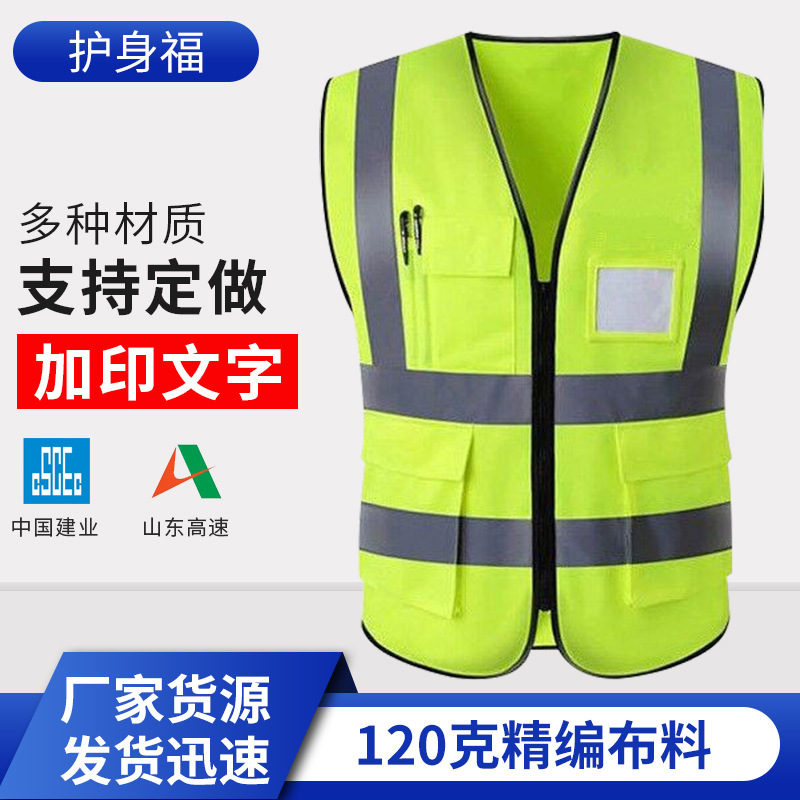 제조 업체 공급 금속 지퍼 pvc 투명 포켓 120g 미세 짠 패브릭 하이라이트 반사 조끼 도매스토어 가기