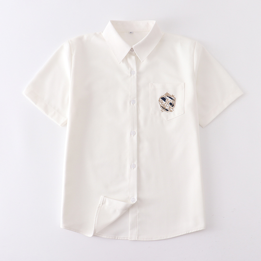 • 자수 없음 여성용 반팔 스위밍 셔츠 + 조끼 레몬 옐로우 + 22% 할인 42cm 블루 스커트 + 3버튼 티 웨스트 + 대학 골든 뱃지 + 하지 타이