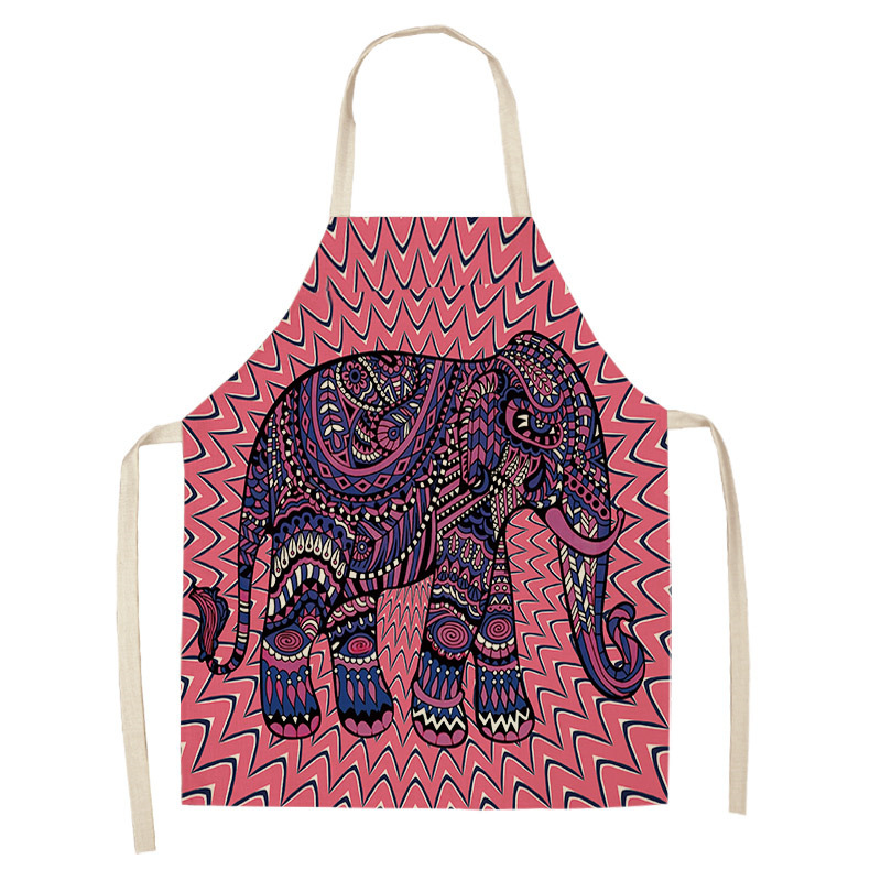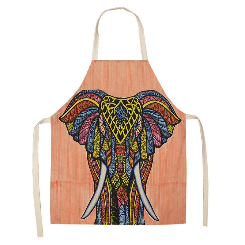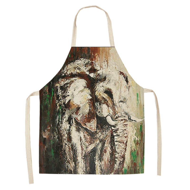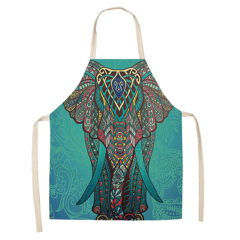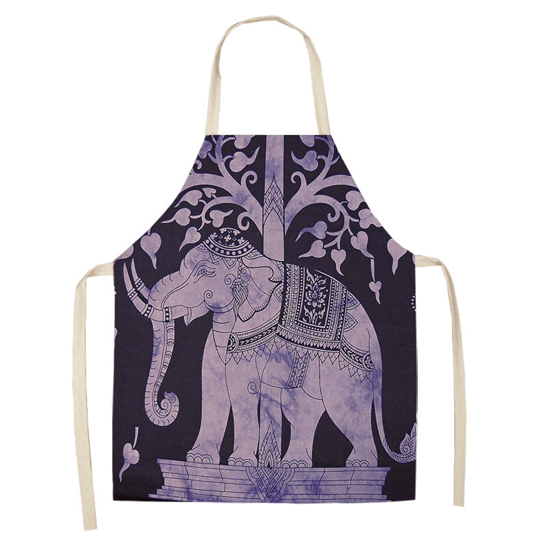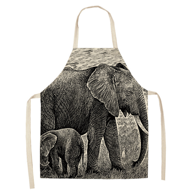 코끼리 패턴 여성용 주방 앞치마 남여 공용 면 린넨 턱받이 홈 요리 베이킹 커피 숍 청소 액세서리