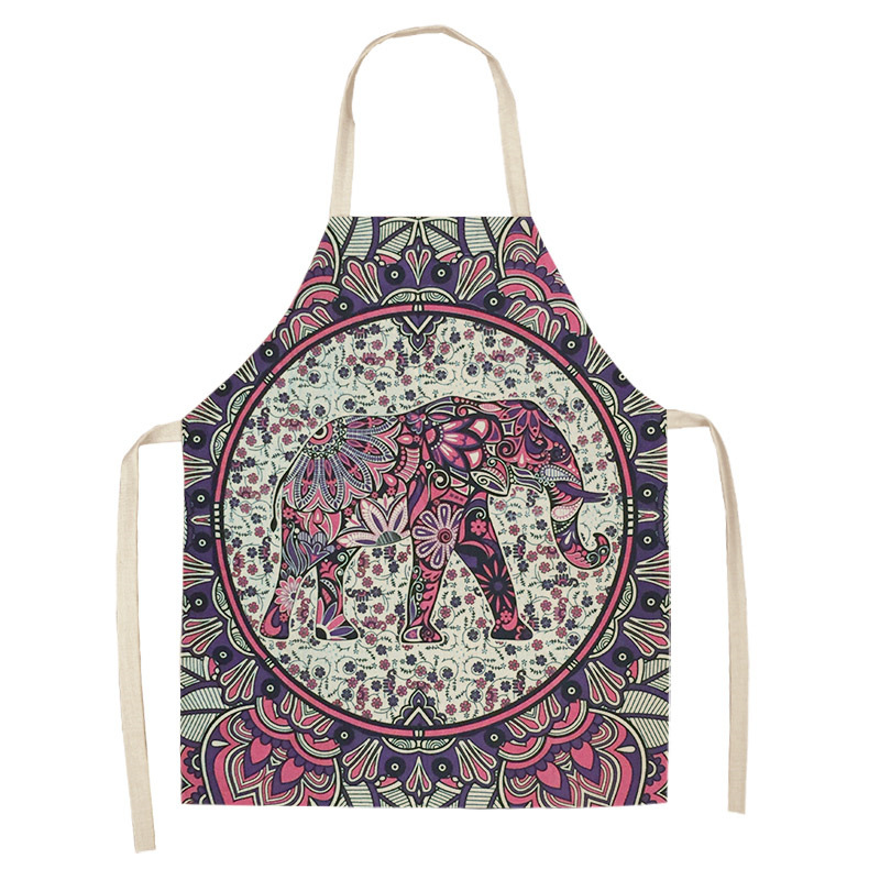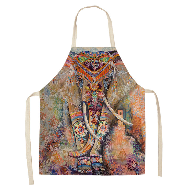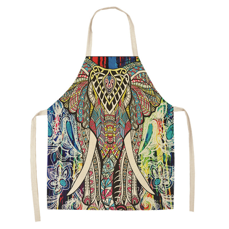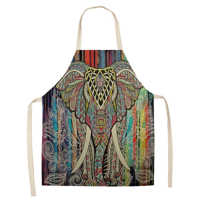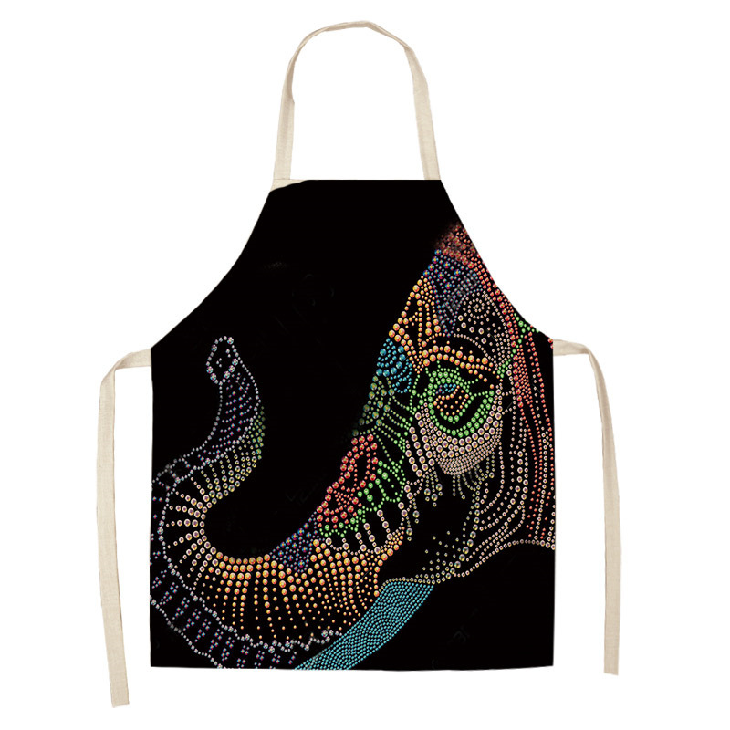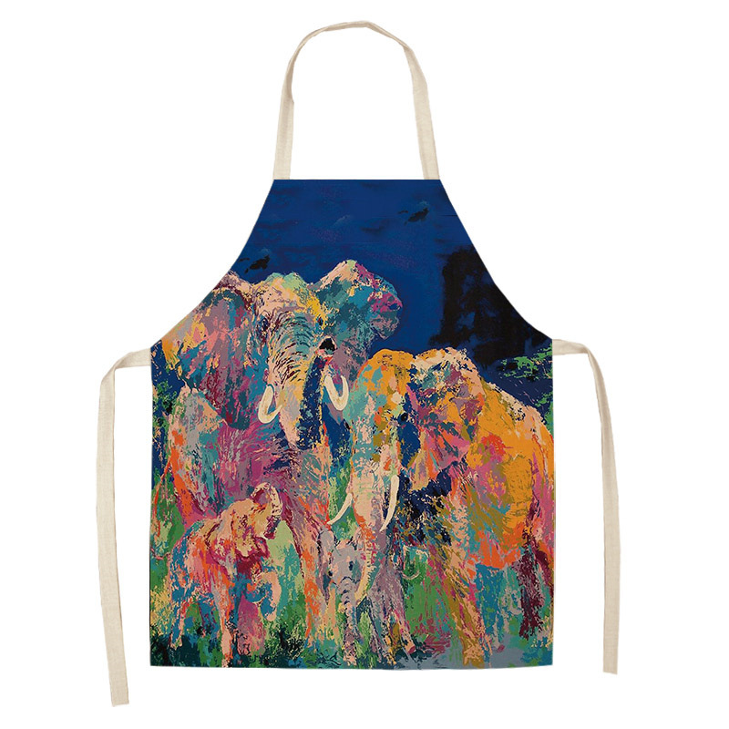 코끼리 패턴 여성용 주방 앞치마 남여 공용 면 린넨 턱받이 홈 요리 베이킹 커피 숍 청소 액세서리