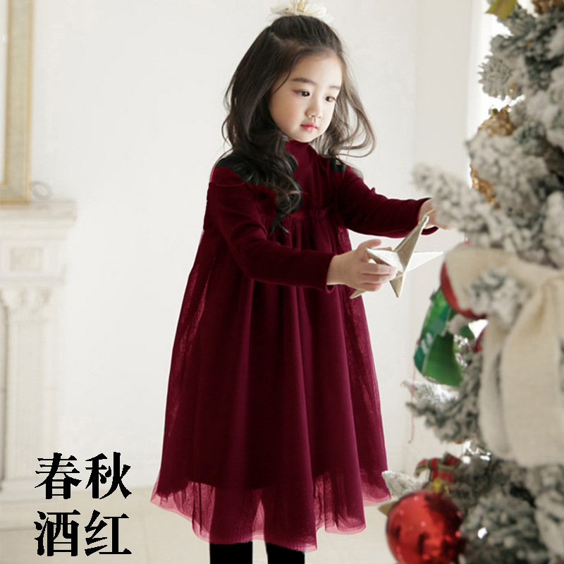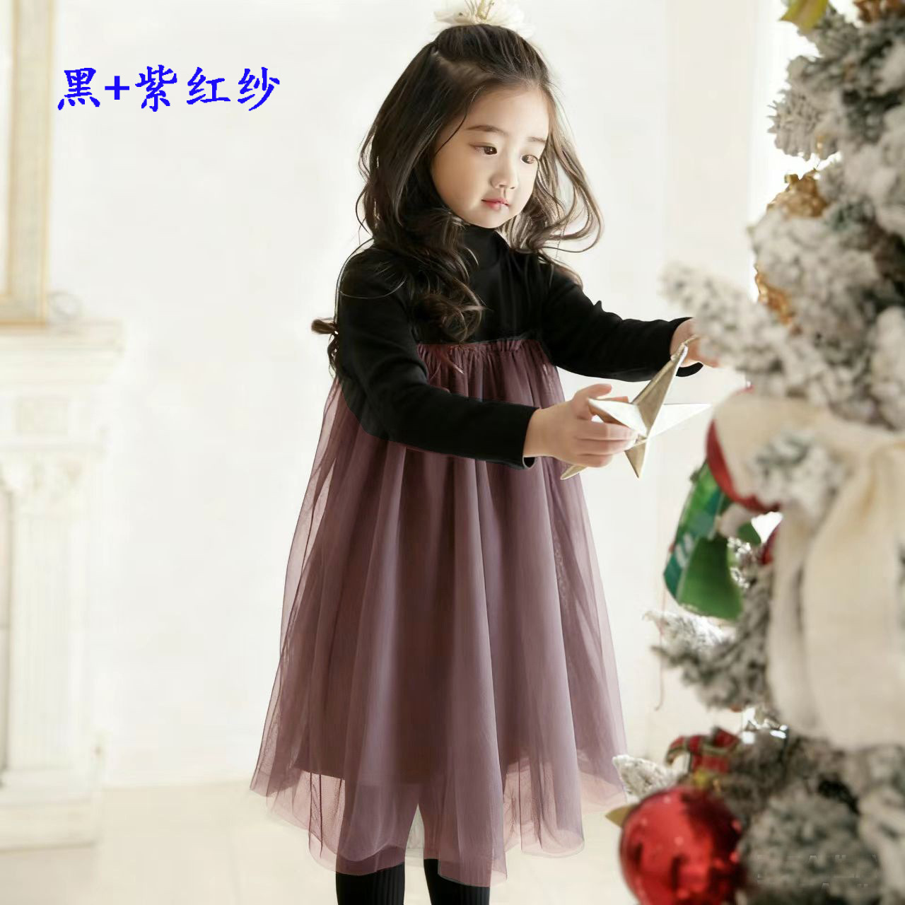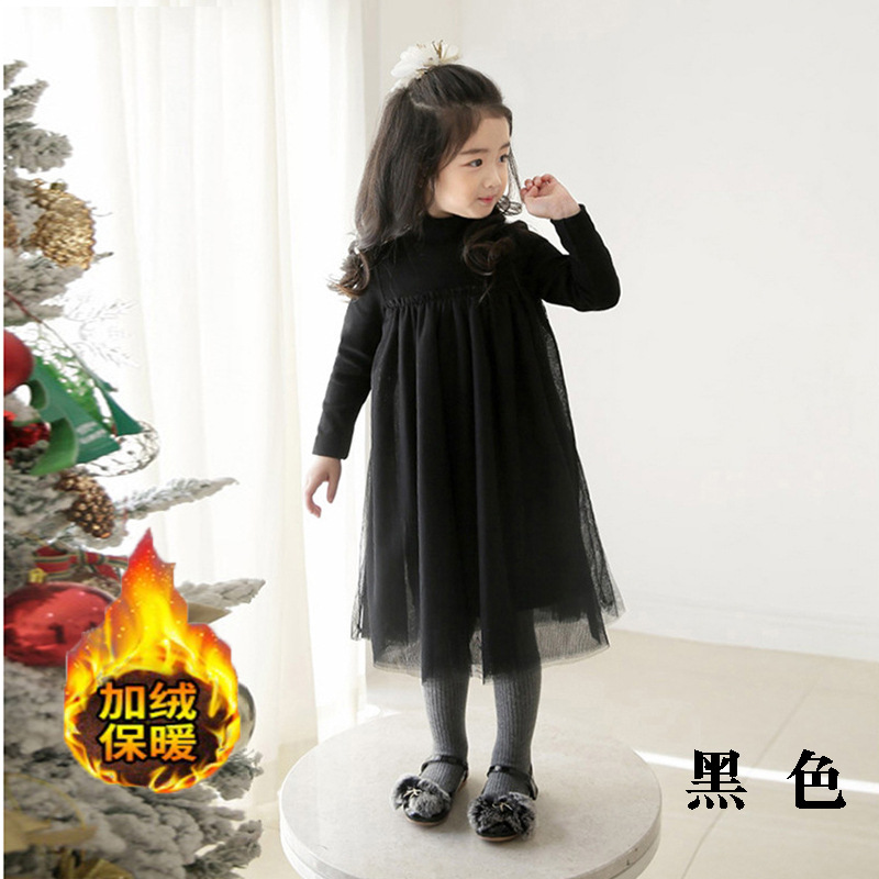 한국 스타일 여아 스커트 새로운 스타일 세트 칼라 메쉬 어린이 플러스 사이즈 뚱뚱한 아이 느슨한 중소 규모 어린이의 긴 가을과 겨울 원피스