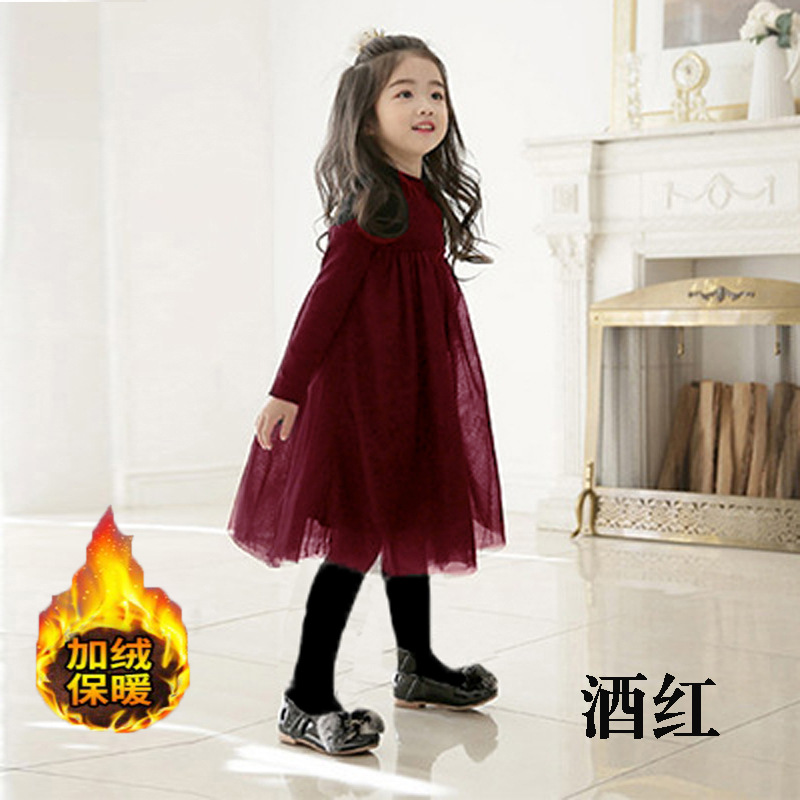 한국 스타일 여아 스커트 새로운 스타일 세트 칼라 메쉬 어린이 플러스 사이즈 뚱뚱한 아이 느슨한 중소 규모 어린이의 긴 가을과 겨울 원피스스토어 가기