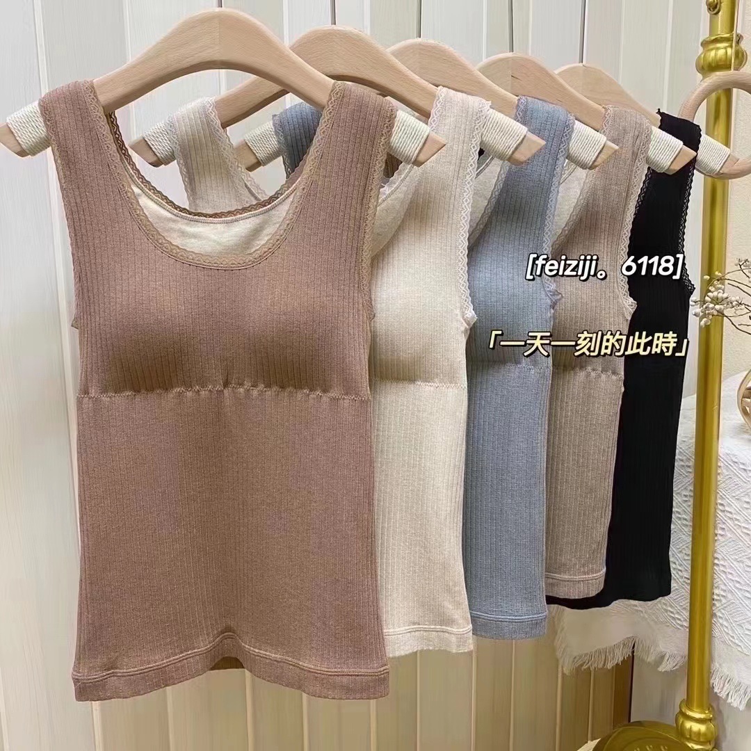 Feiziji 6118 더블 레이어 두꺼운 여성 조끼 드 롱 따뜻한 여성 기모 속옷 얇은 스레드 벨트 가슴 패드 가을과 겨울스토어 가기