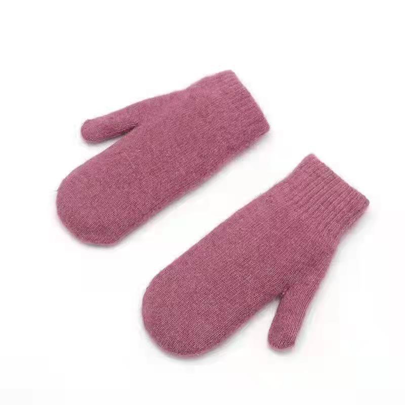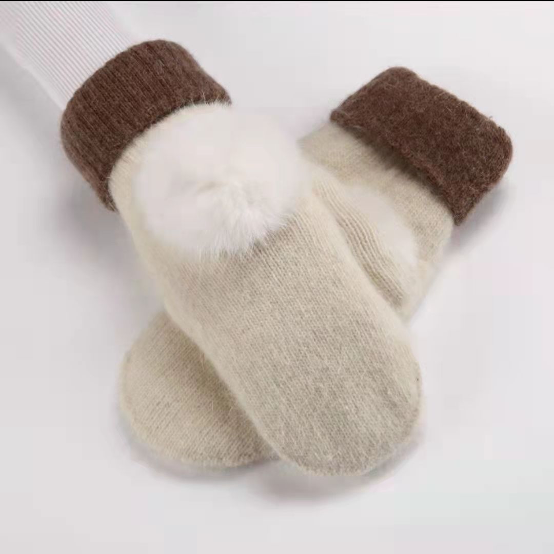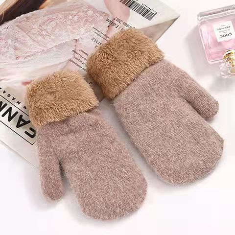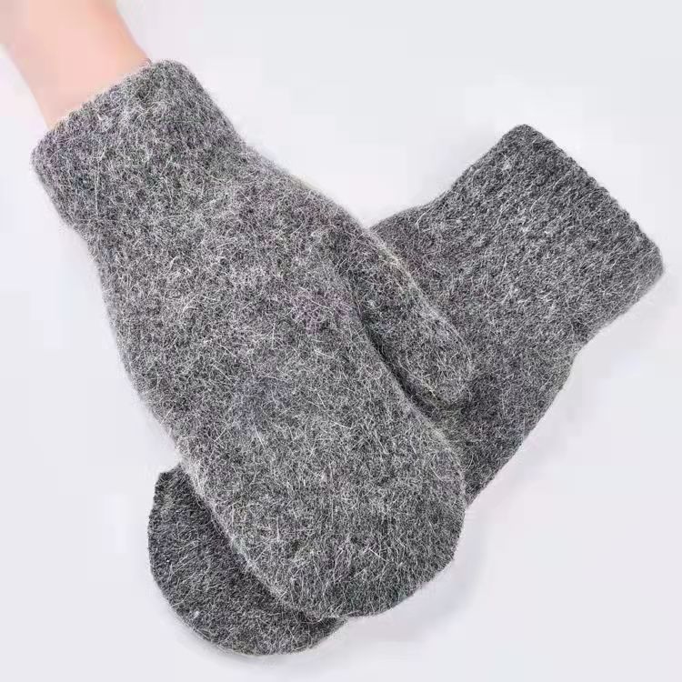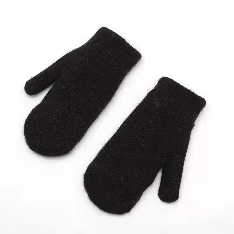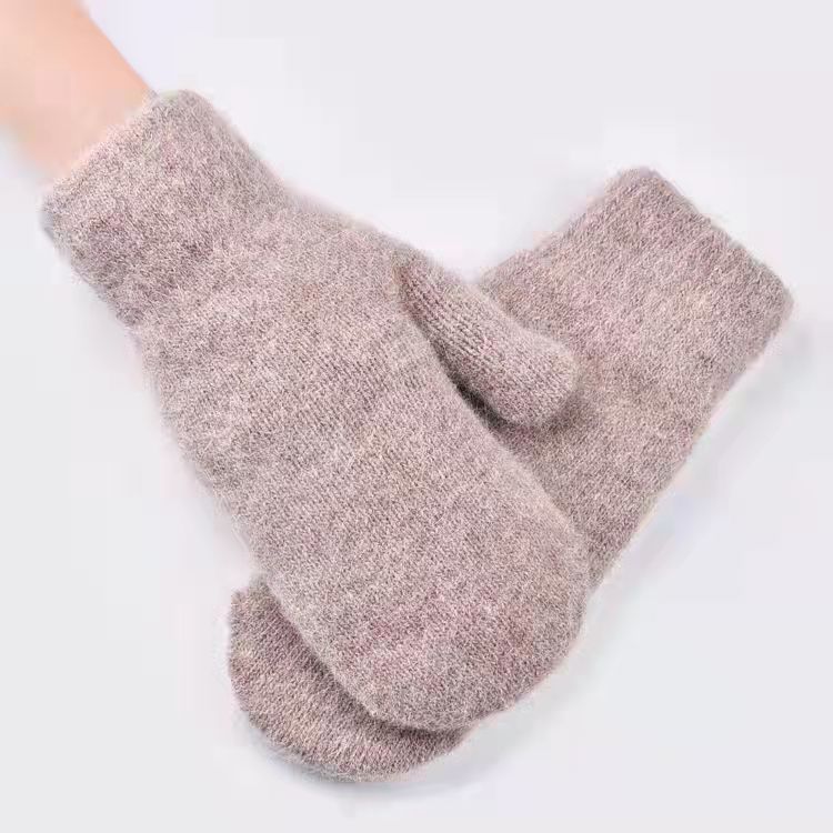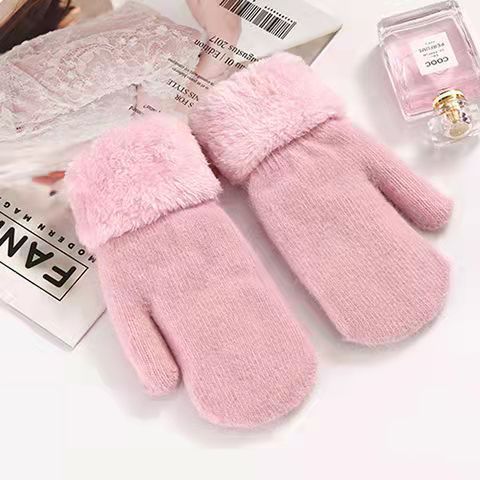 加绒手套女冬季骑车护手可爱保暖针织兔毛包指加厚纯色连指手套