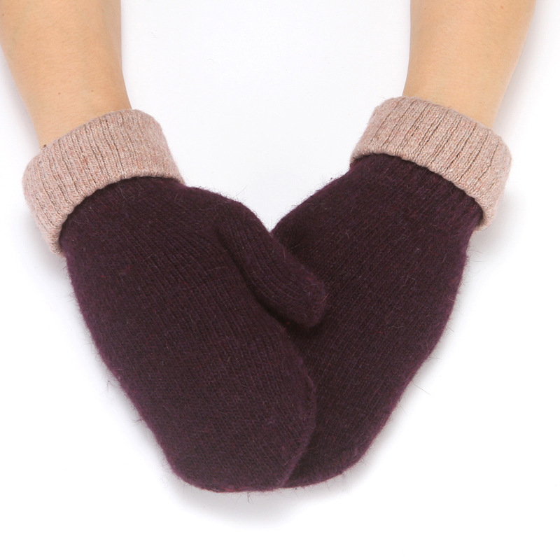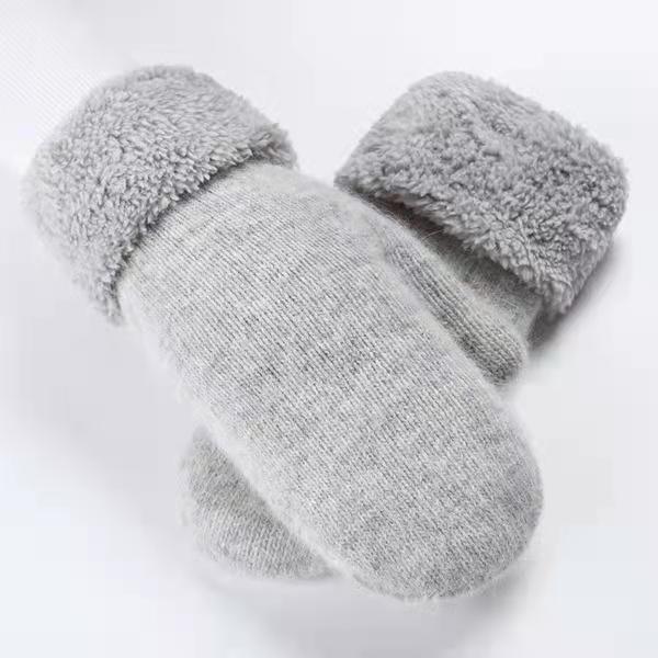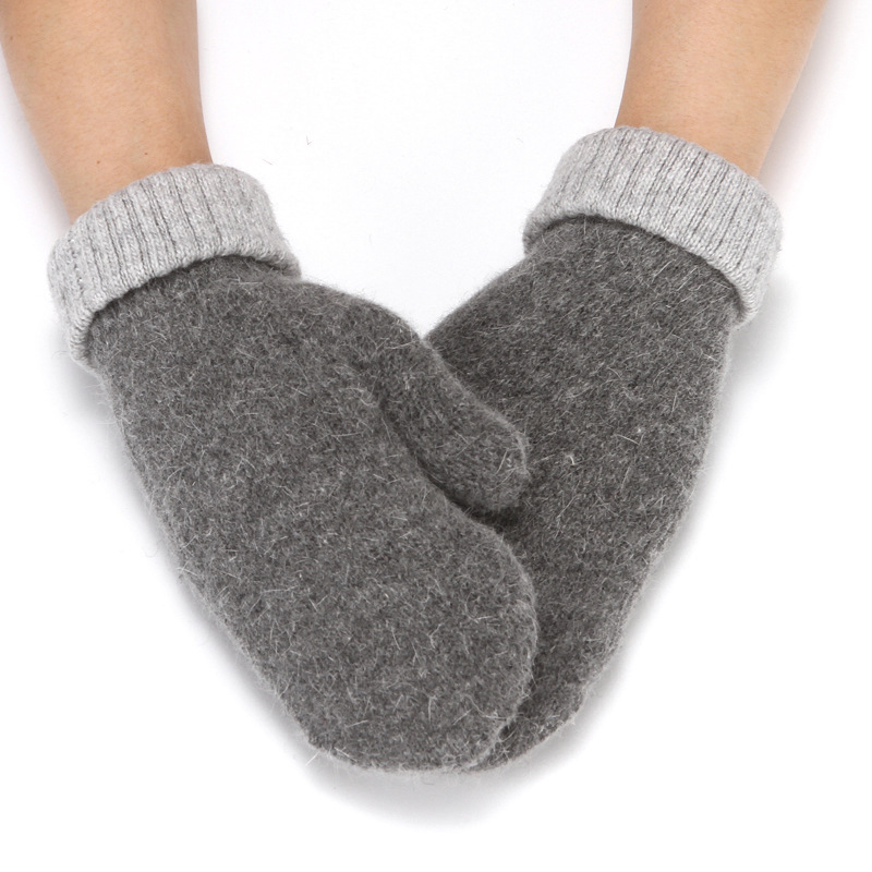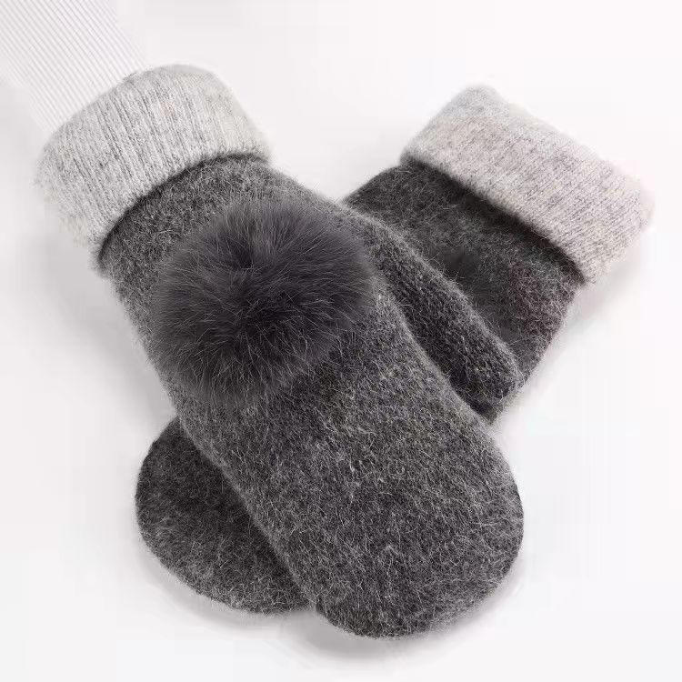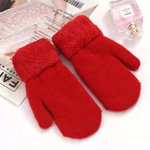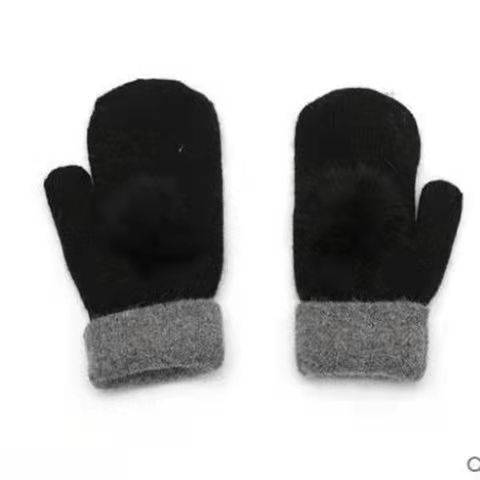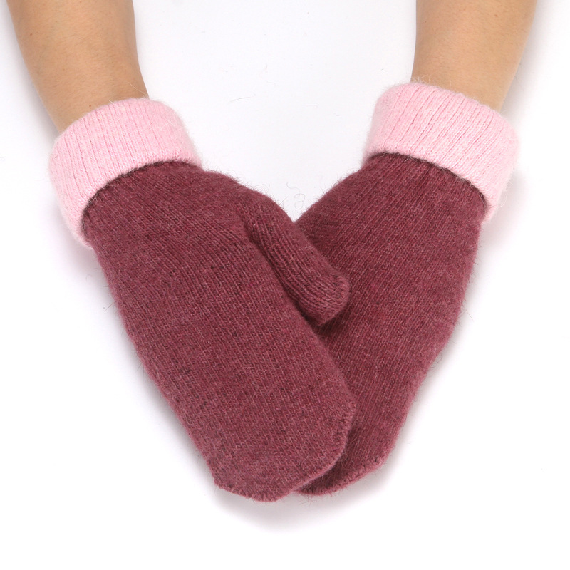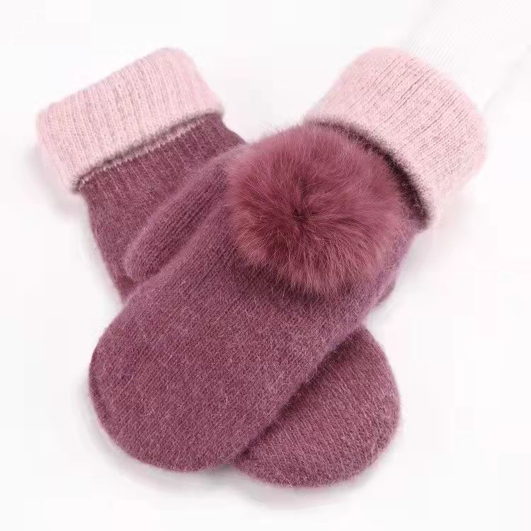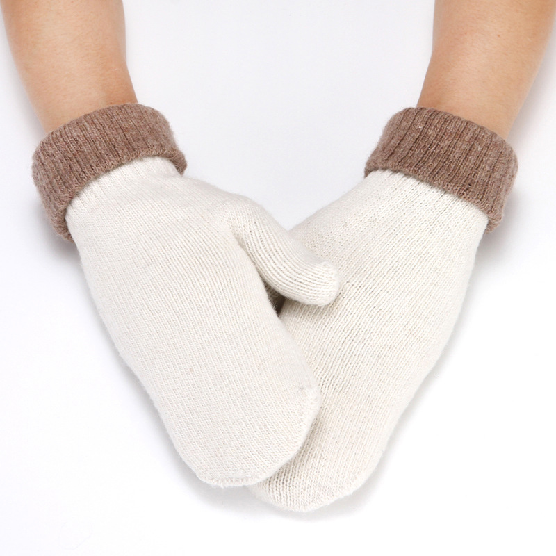 加绒手套女冬季骑车护手可爱保暖针织兔毛包指加厚纯色连指手套