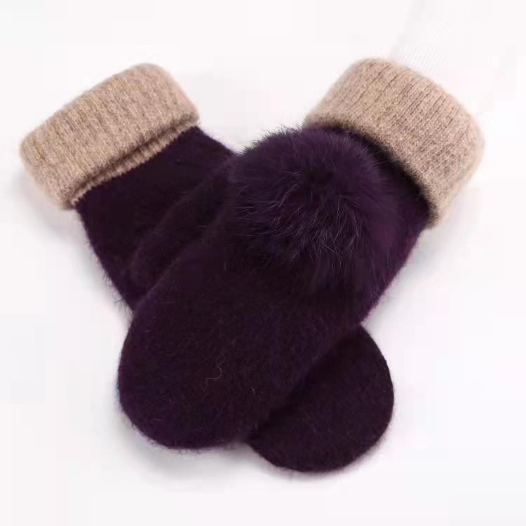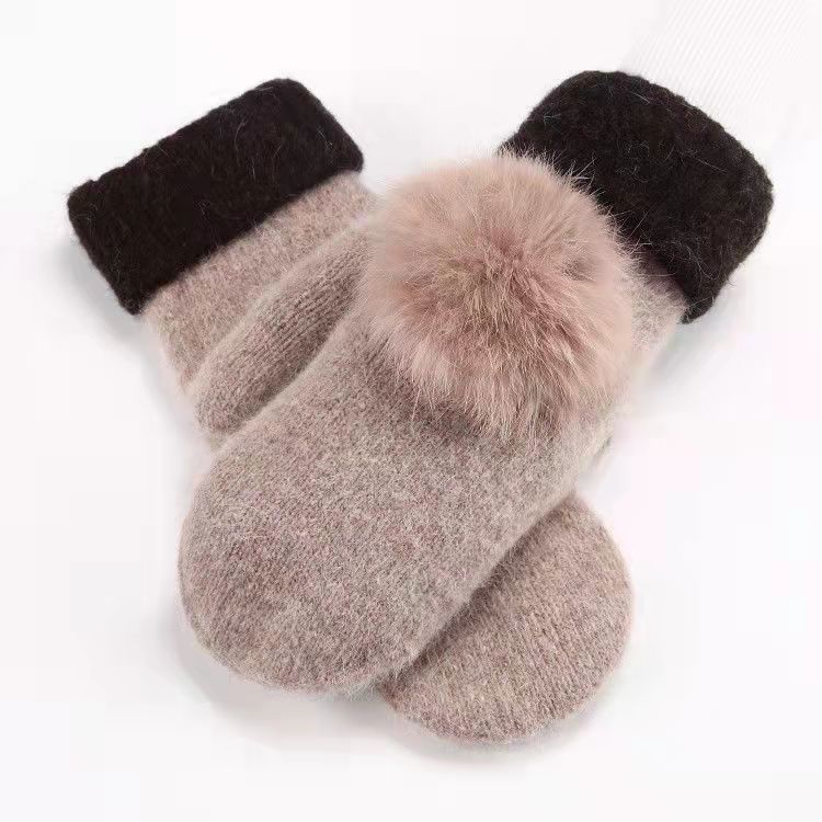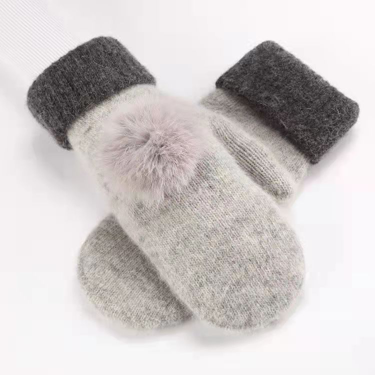 벨벳 장갑 여자의 겨울 사이클링 핸드 가드 귀여운 따뜻한 니트 토끼 모피 가방 두꺼운 단색 장갑스토어 가기