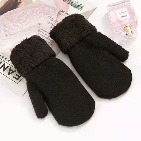 秋冬包指手套女冬加厚新款加绒双层毛绒保暖可爱连指针织手套跨境