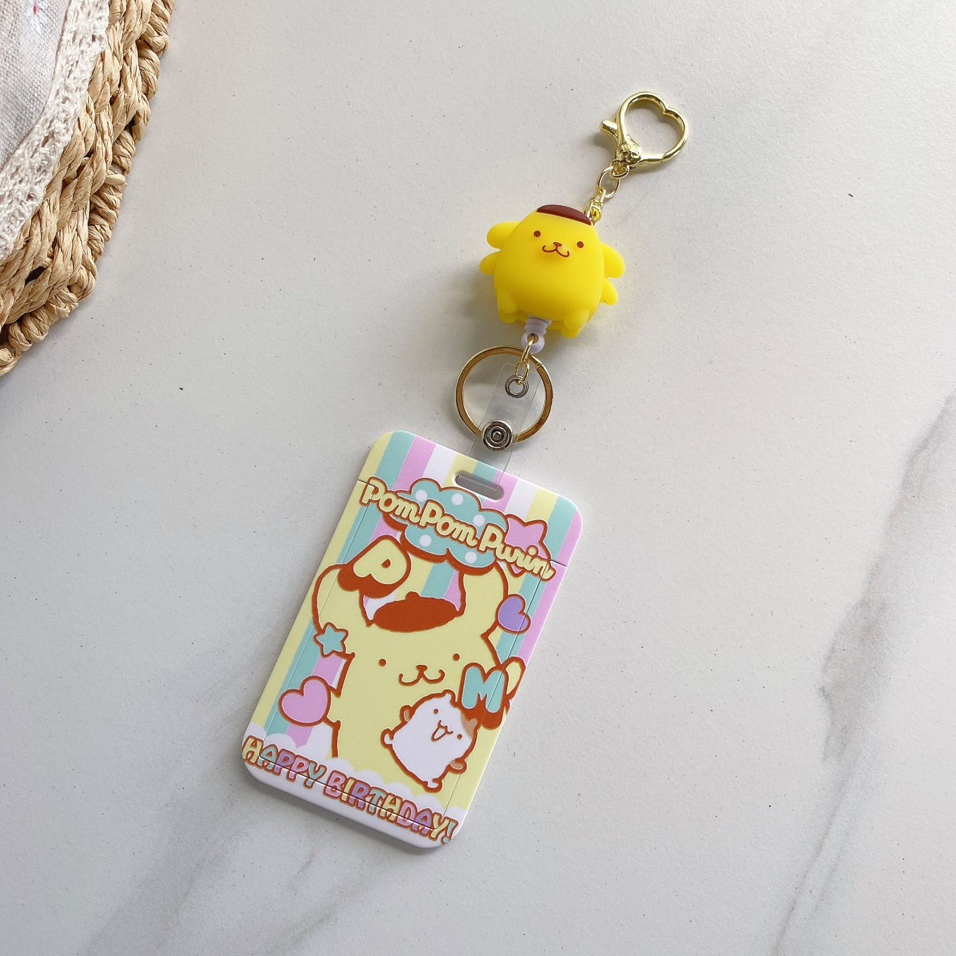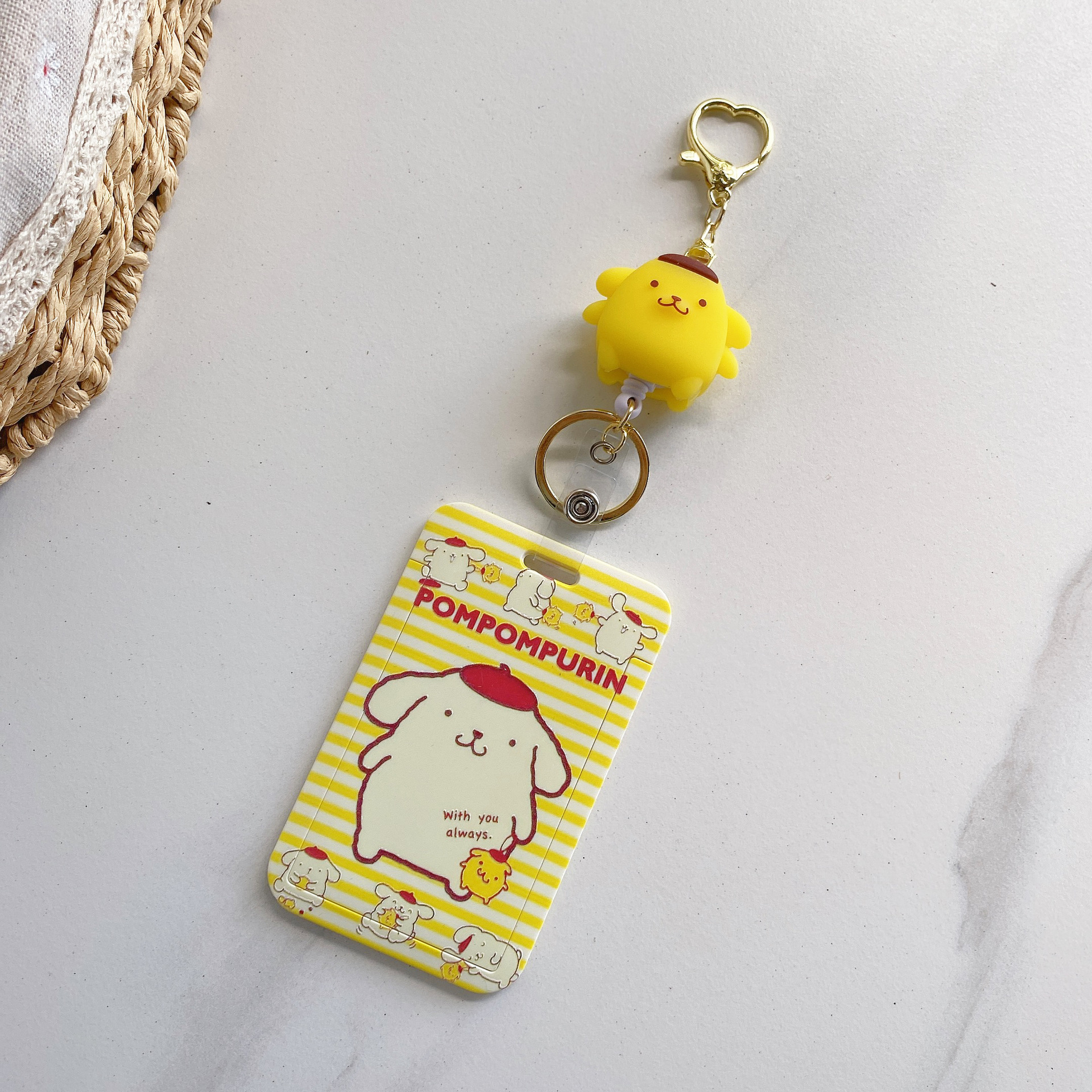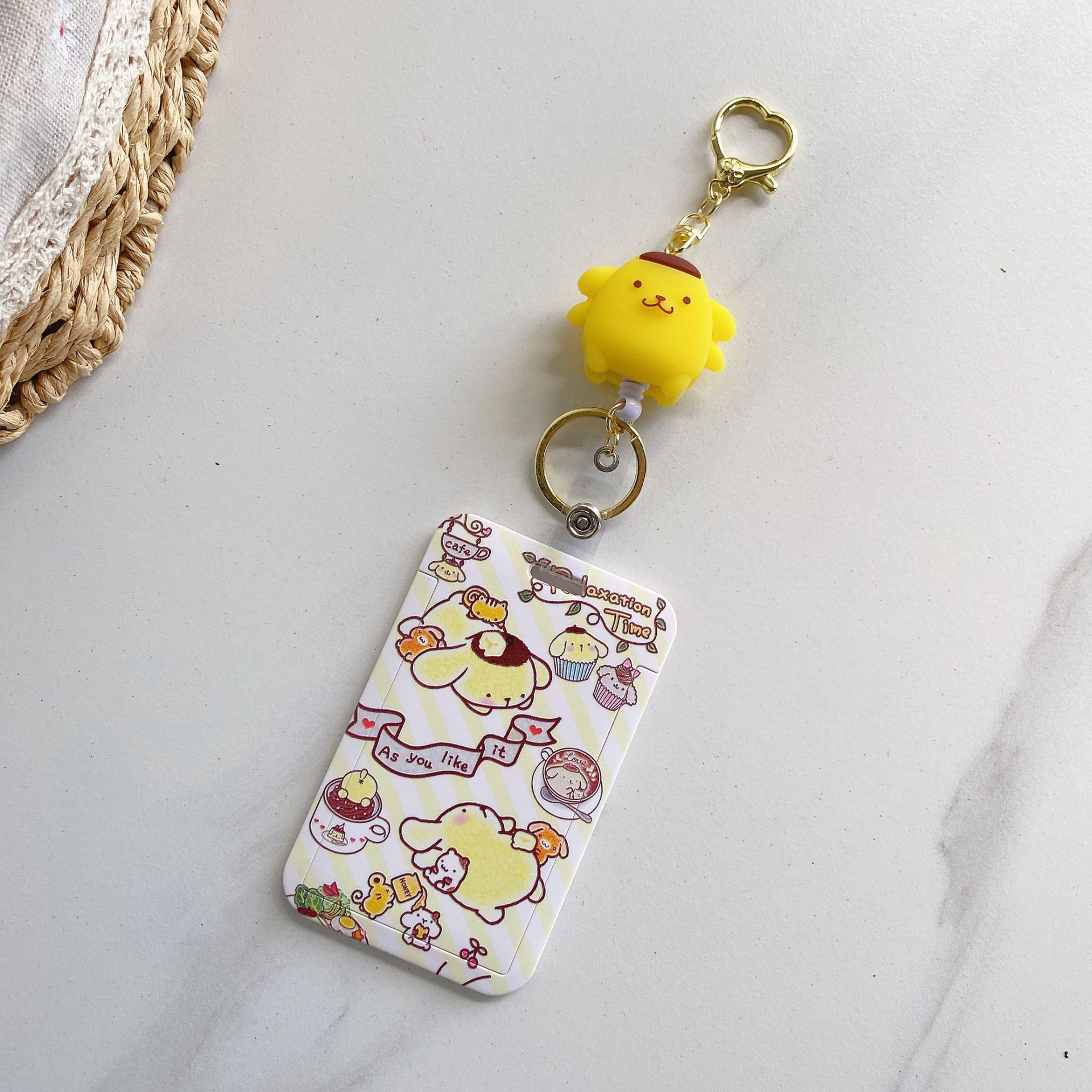 귀여운 만화 푸딩 개 학생 카드 홀더 크리에이티브 텔레스코픽 카드 홀더 버스 카드 액세스 카드 홀더 분실 방지 책가방 교수형 버클