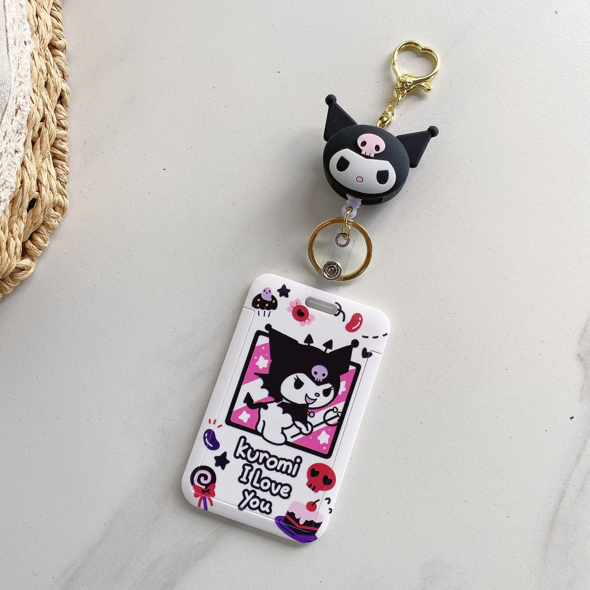 귀여운 만화 산리오 학생 카드 세트 창조적 인 텔레스코픽 카드 세트 버스 카드 액세스 카드 세트 분실 방지 책가방 교수형 버클