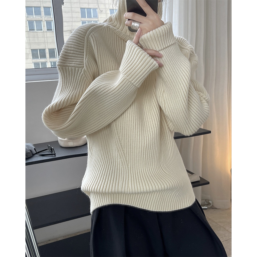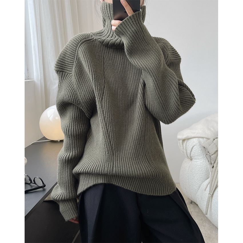 겨울 새로운 한국 스타일 유행 실루엣 게으른 터틀넥 스웨터 느슨한 슬리밍 따뜻한 여성을위한 편안한 유행 탑
