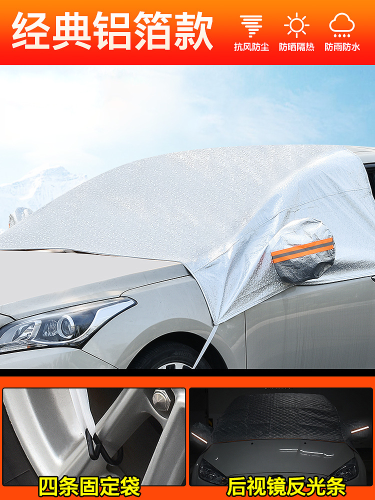 새로운 크로스 보더 자동차 보편적 인 알루미늄 필름 겨울 눈 덮개 반 덮개 두꺼운 부동액 덮개 반 몸 앞 방패 차양스토어 가기