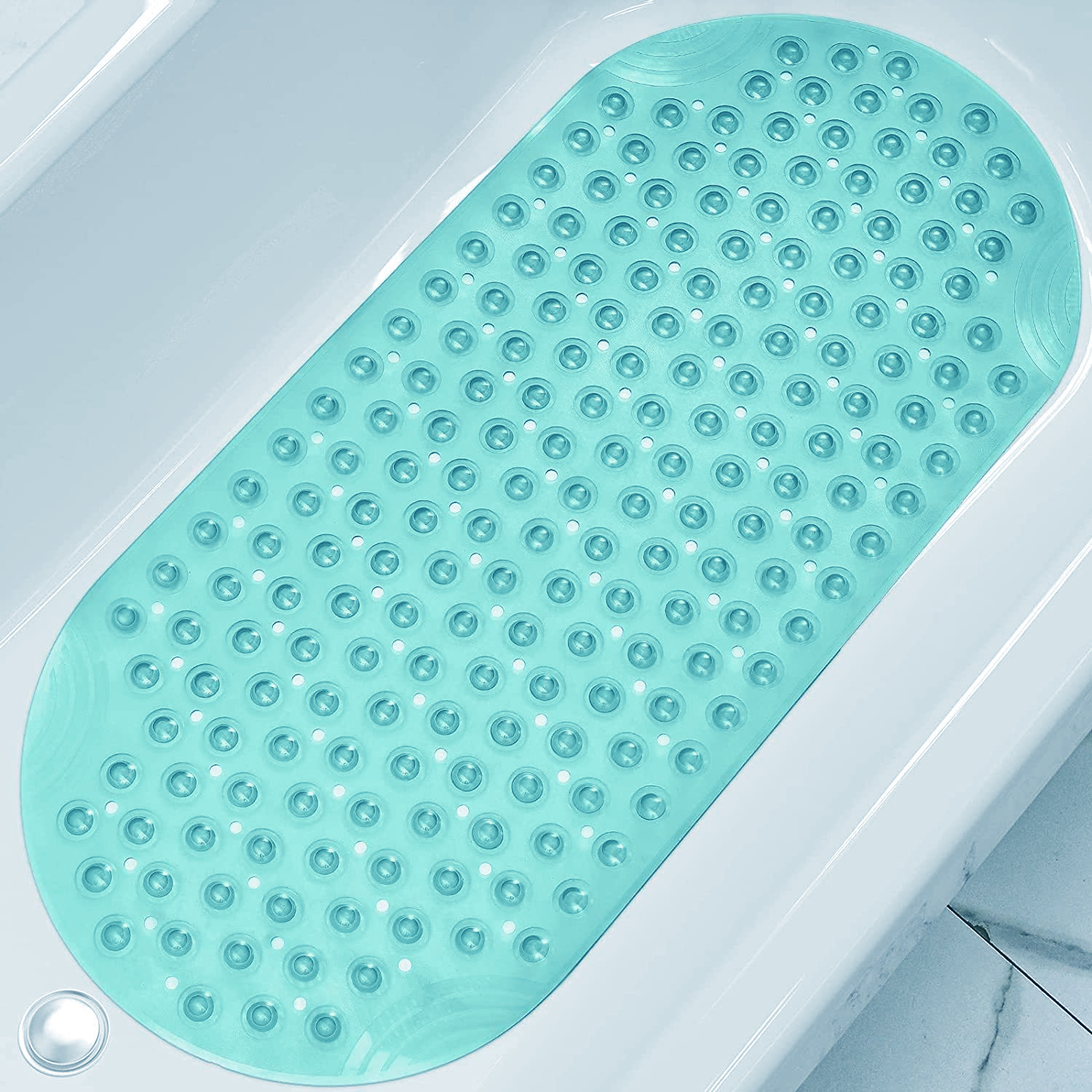 使用方法及安全提示:多个强力吸盘,使用前请先将地面用湿拖把拖净(防滑垫吸盘在湿地面砖上容易牢牢吸住),或者给地面洒水再把防滑垫铺在地砖上,最好再站上去踩几下,就与地面贴得牢牢的了浴室的光滑地面可是容易被忽略的安全"杀手",一旦有蒸汽、水滴或空气返潮现象,一不小心就会滑倒,突发危险事故,有了这款防滑垫就能大大提升浴室活动的安全性,更安全的选择。