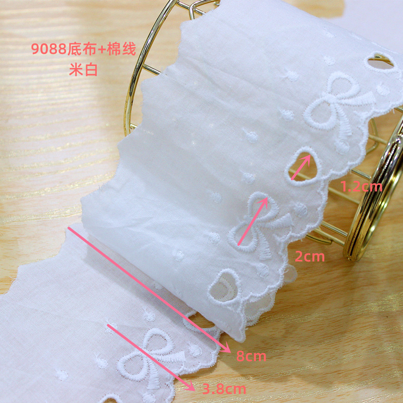 천연 레이스 폭 5-8cm 하트 모양 리본 코마사 면 자수 로리타 드레스 소재