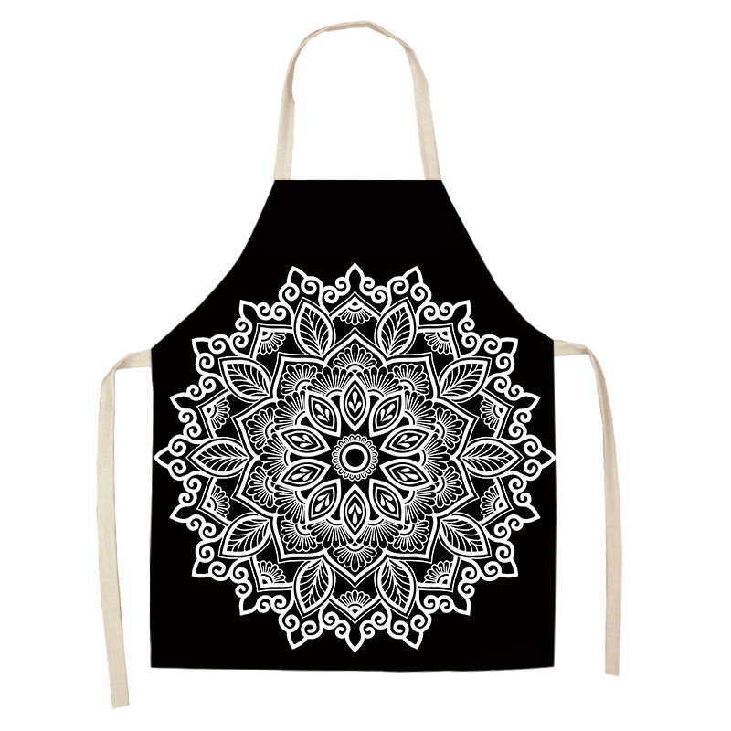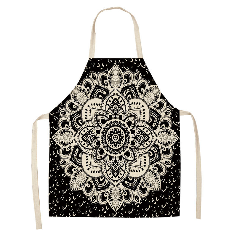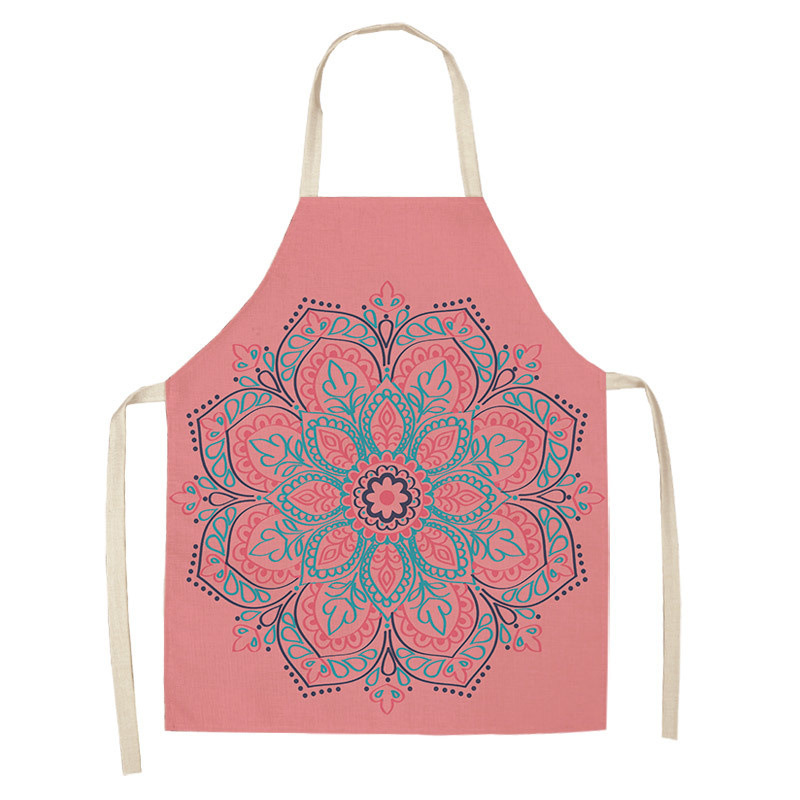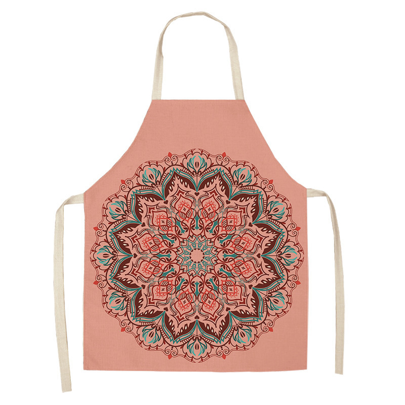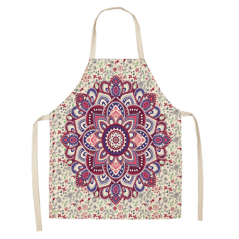 만다라 인쇄 면화 및 린넨 주방 여성 요리사 앞치마 가정 요리 베이킹 커피 숍 청소 액세서리 55x68