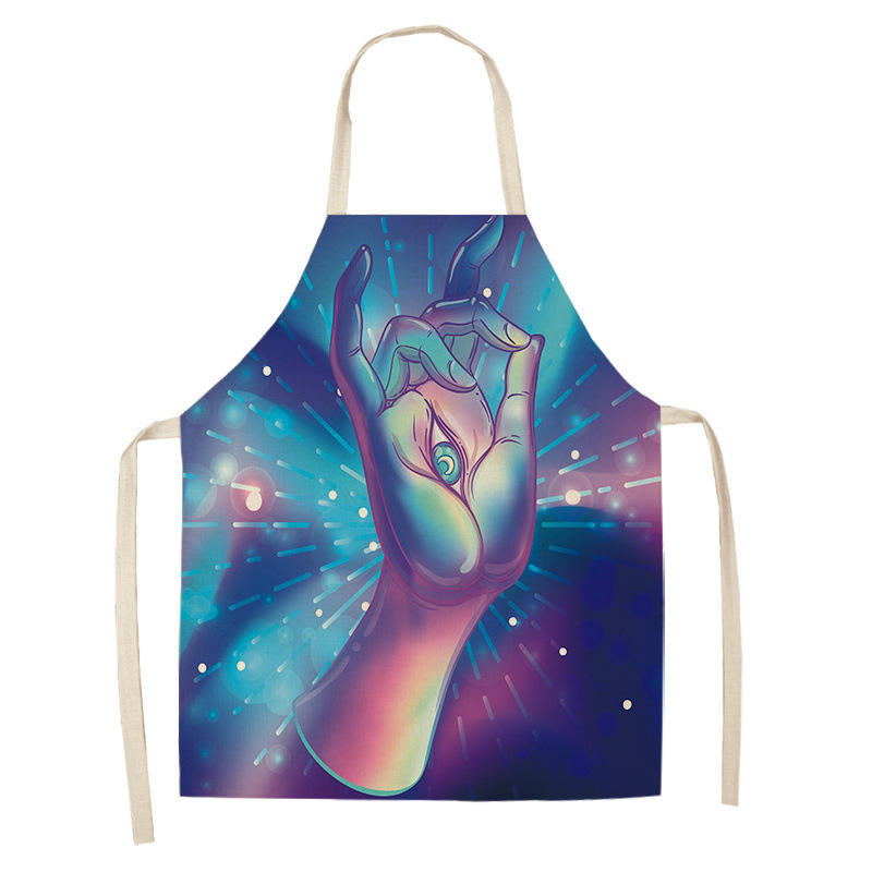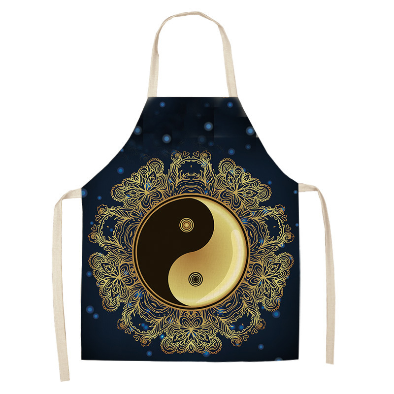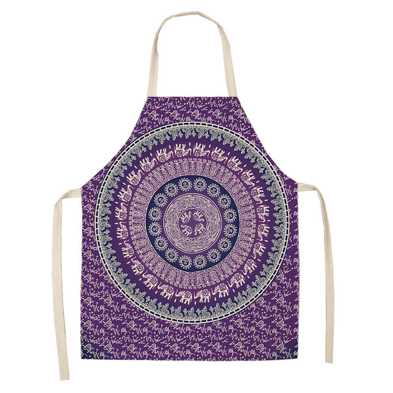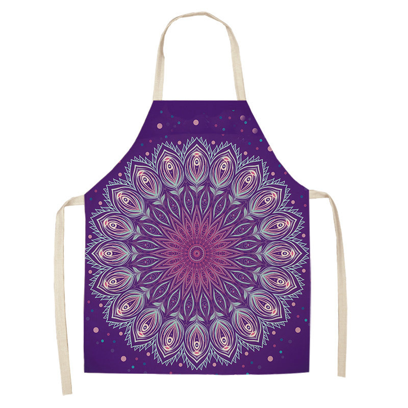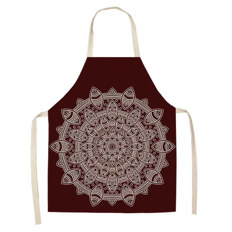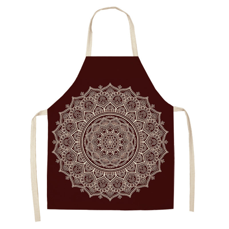 만다라 인쇄 면화 및 린넨 주방 여성 요리사 앞치마 가정 요리 베이킹 커피 숍 청소 액세서리 55x68
