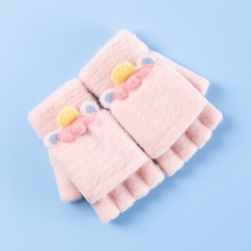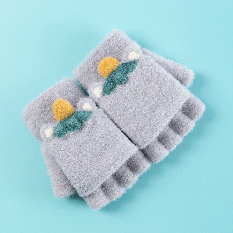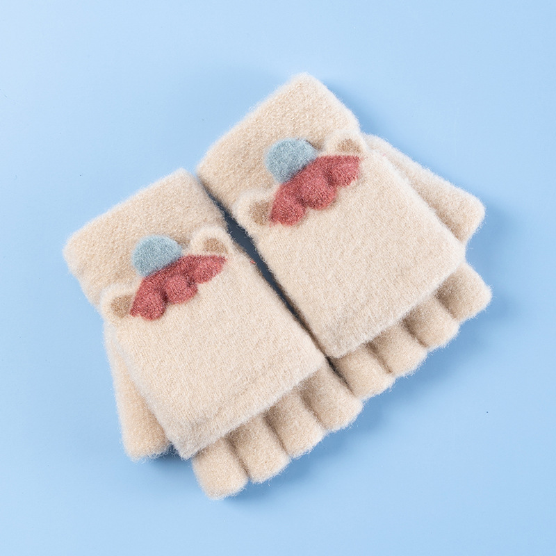 재고 도매 어린이 장갑 겨울 니트 자카드 따뜻한 6-11 세 학생 플립 단색 반 손가락 장갑 쓰기스토어 가기