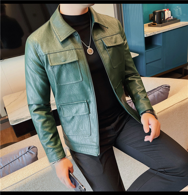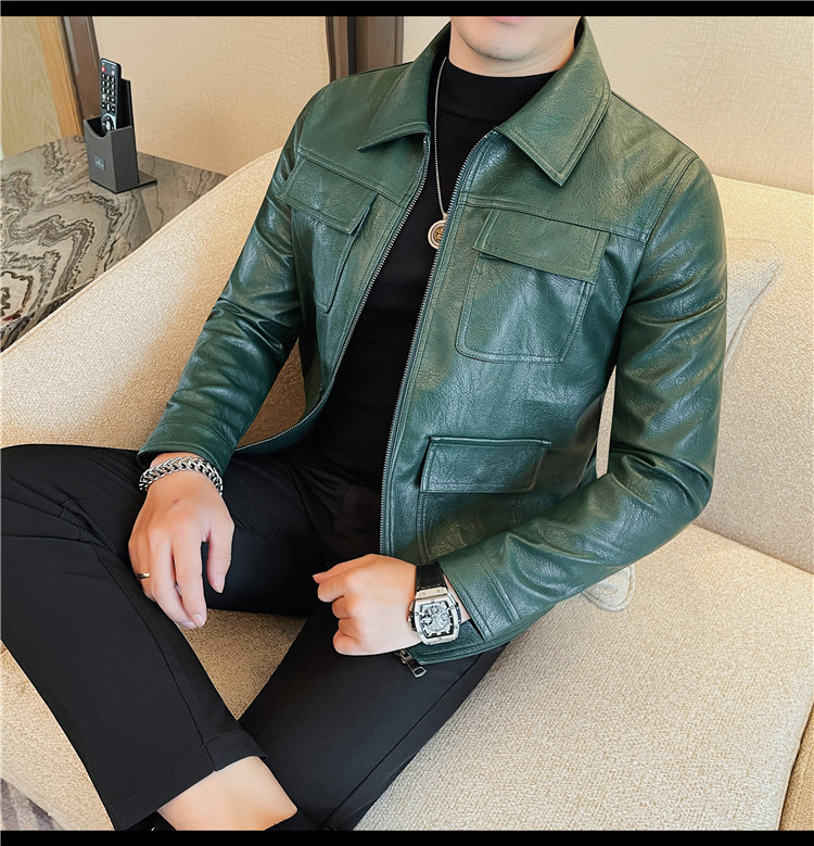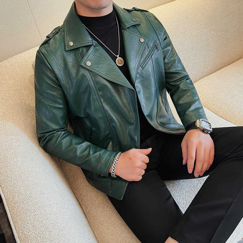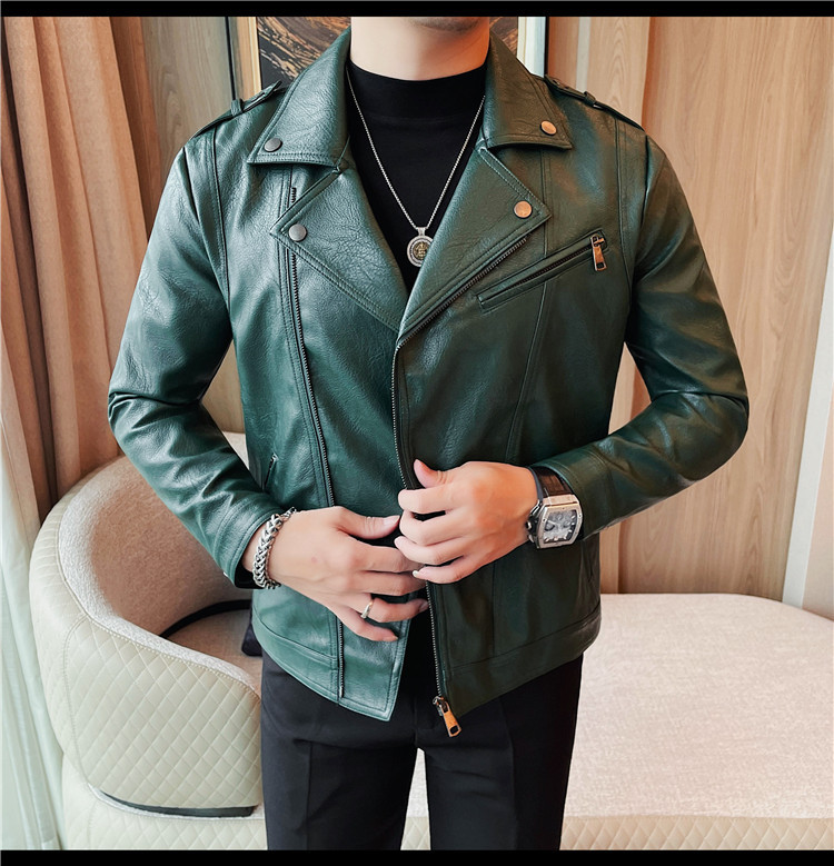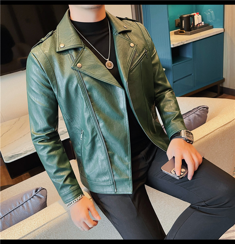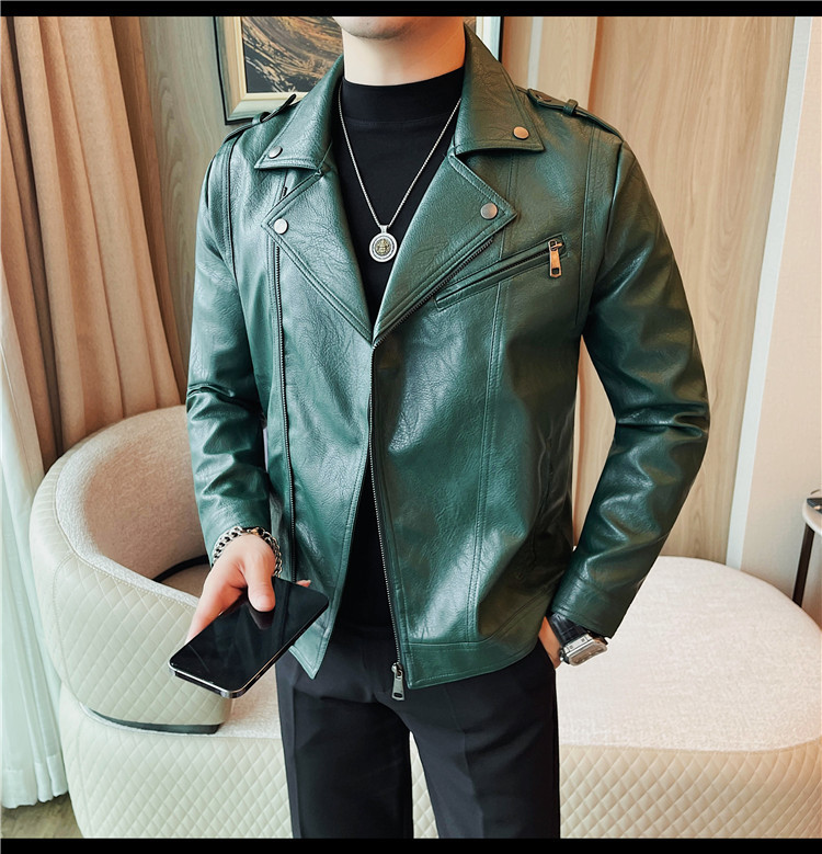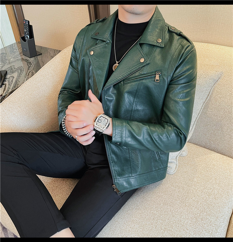 크로스 보더 가죽 남성 가을과 겨울 Ruffian 잘 생긴 외국 오토바이 재킷 코트 소형 버전 슬림핏 브레스트 PU 가죽 남성 의류