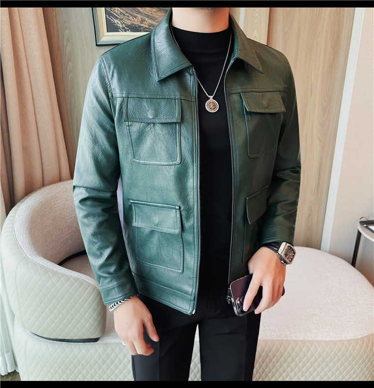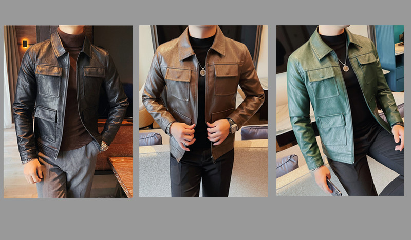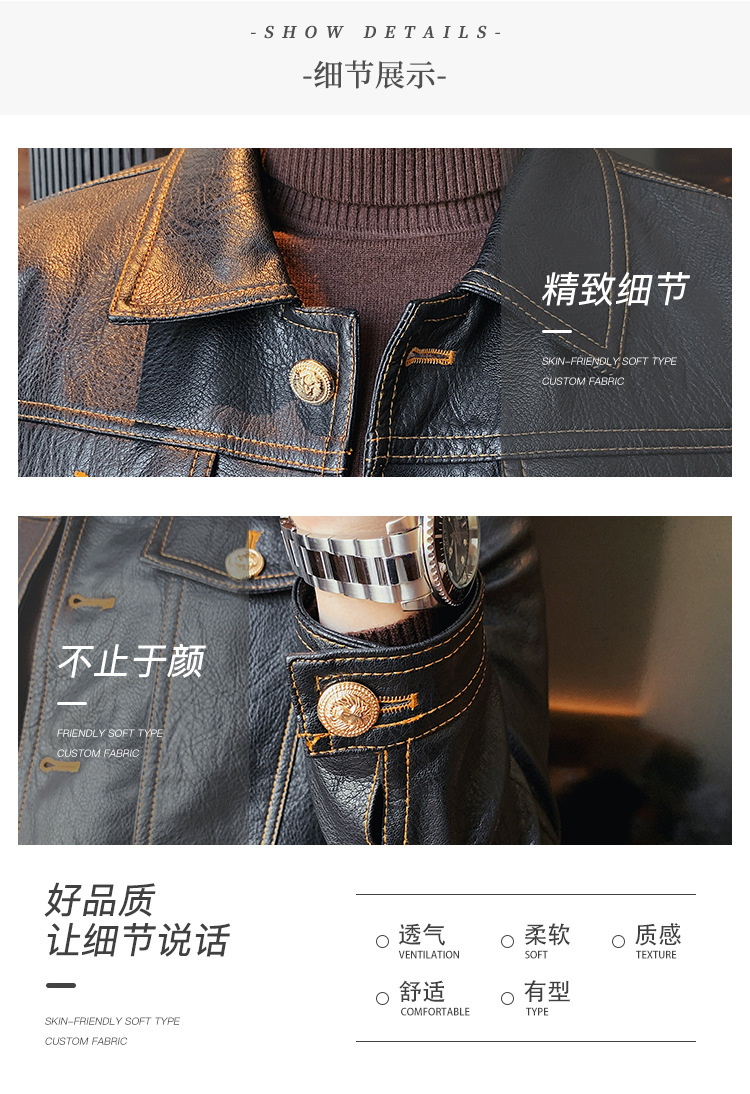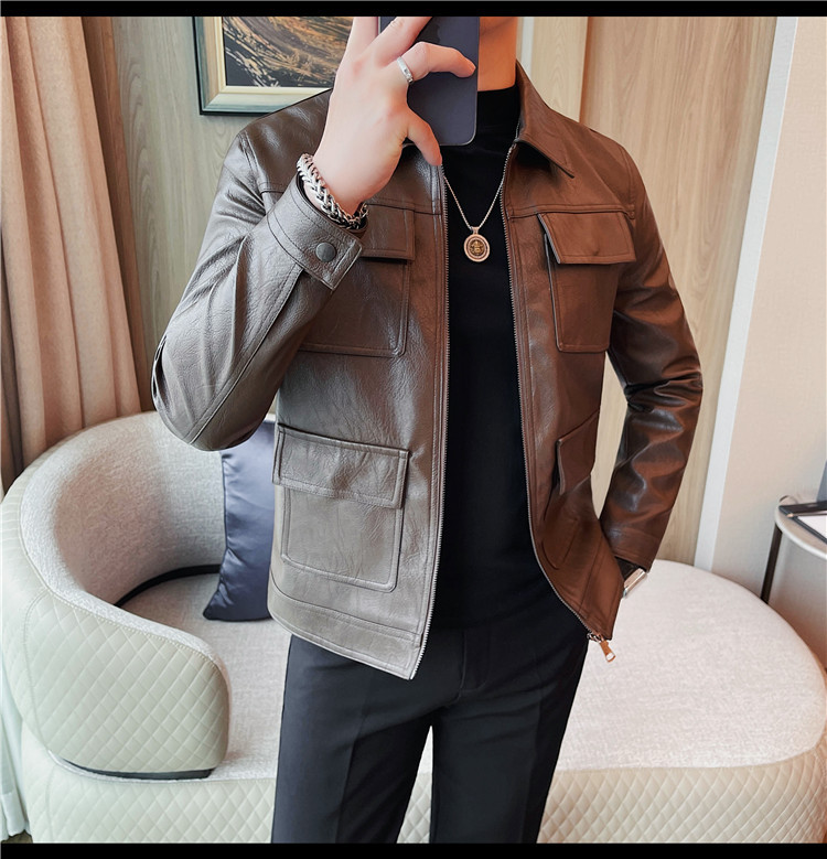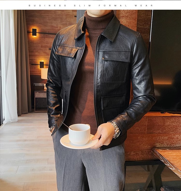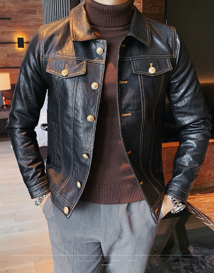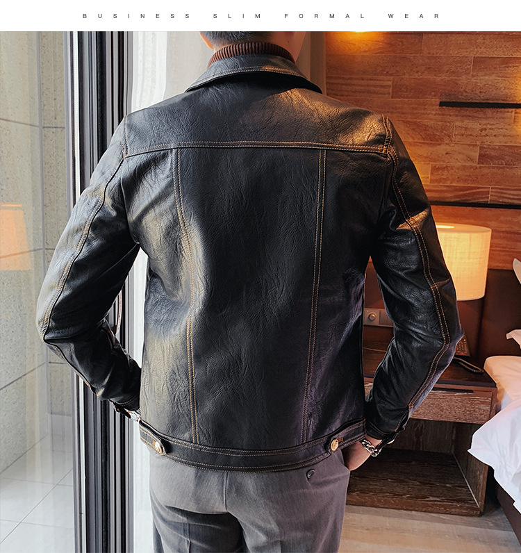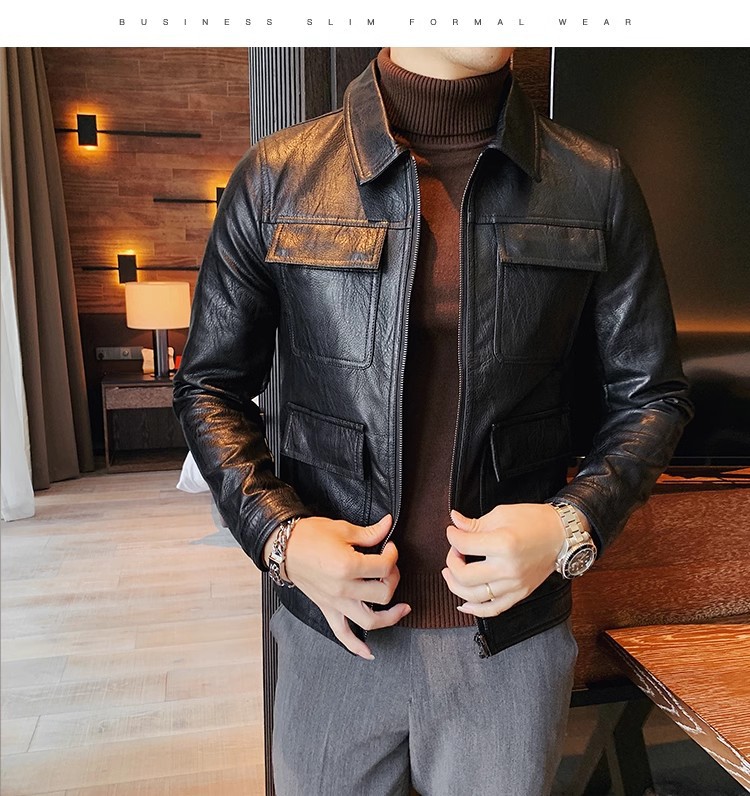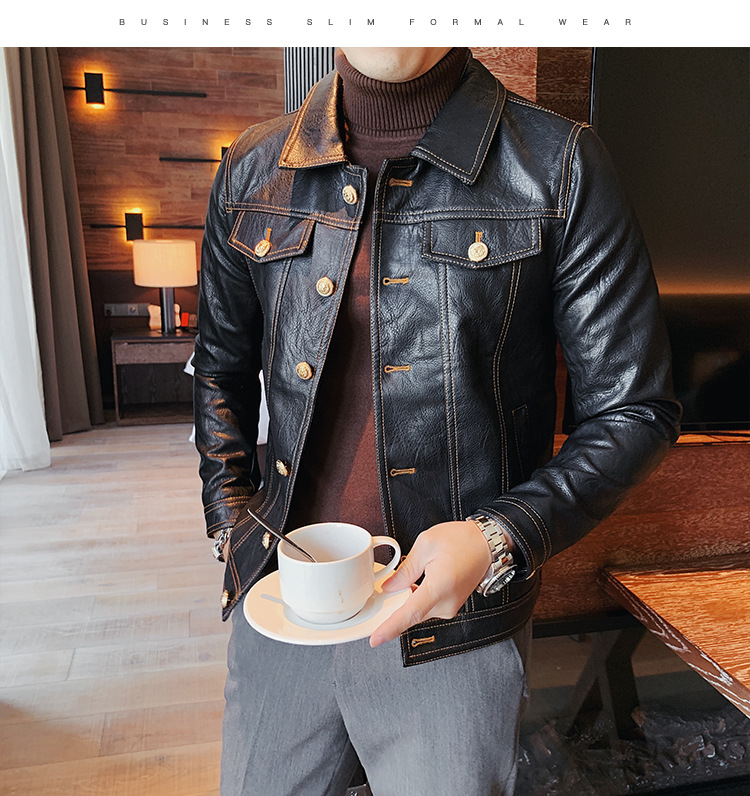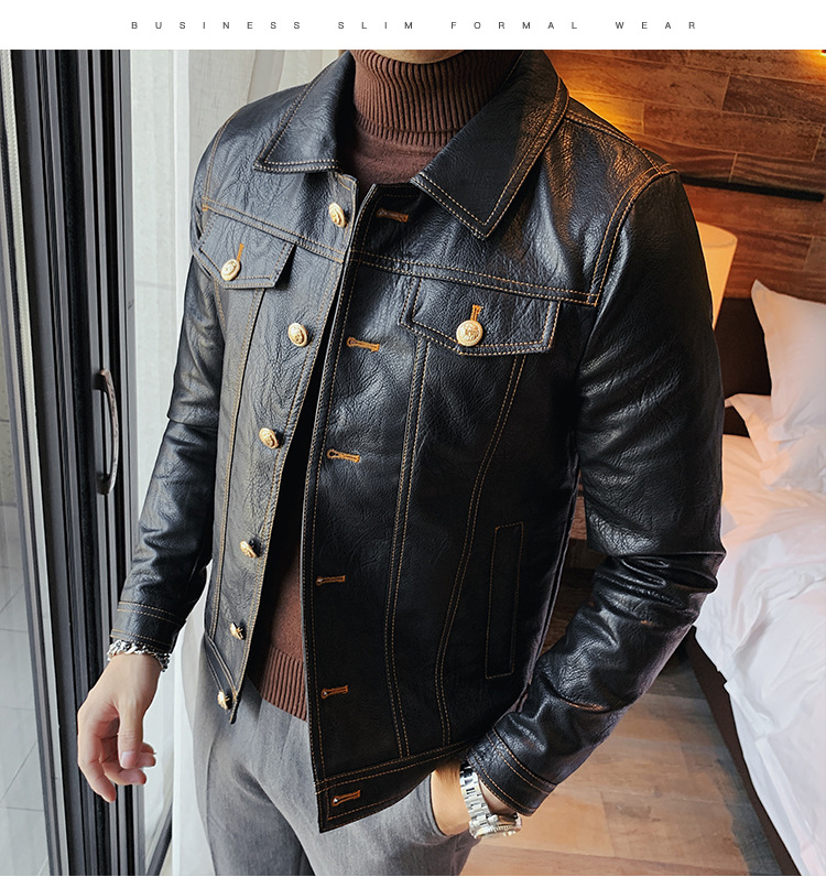 크로스 보더 가죽 남성 가을과 겨울 Ruffian 잘 생긴 외국 오토바이 재킷 코트 소형 버전 슬림핏 브레스트 PU 가죽 남성 의류스토어 가기