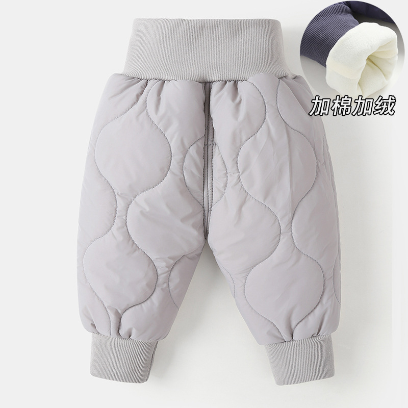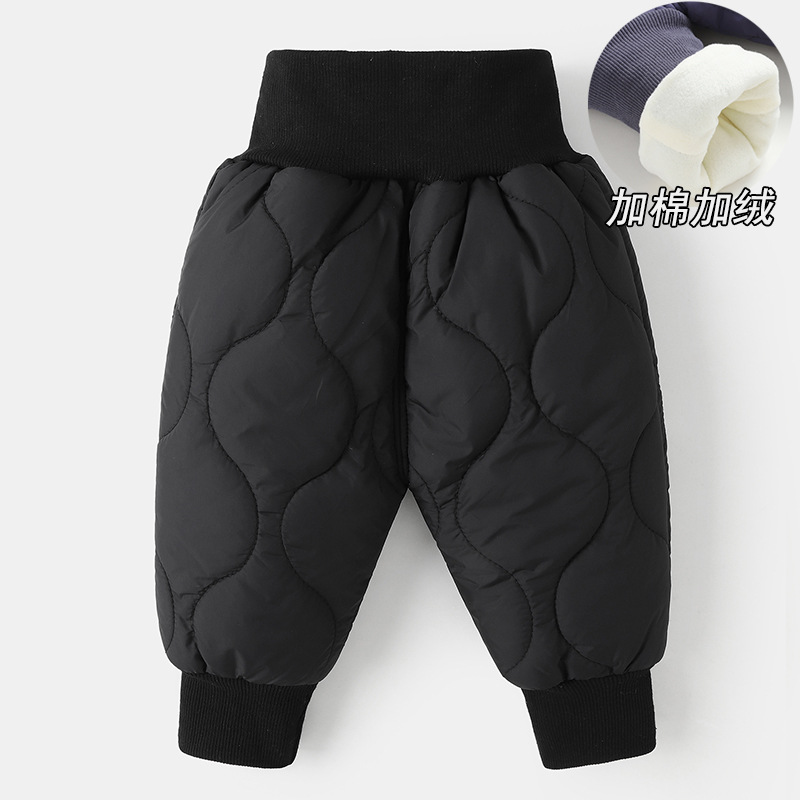 유아 기모 두꺼운 아기 바지 겨울 착용 따뜻한 바지 다운 면 바지 어린이 높은 허리 배꼽 보호 소년과 소녀