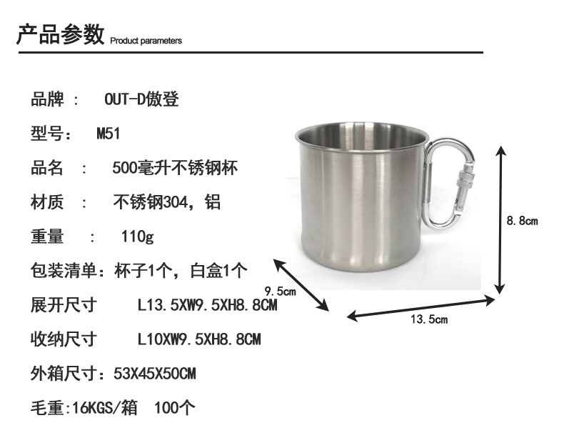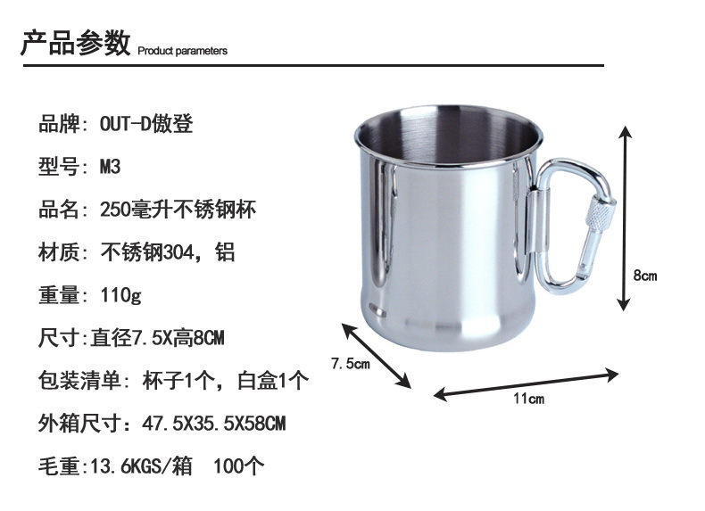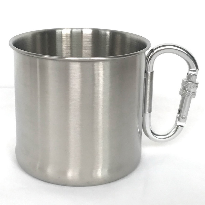 야외 스테인레스 스틸 250/500 ml 스테인레스 스틸 물 컵 카라비너 물 컵 배낭 휴대용 컵 M3