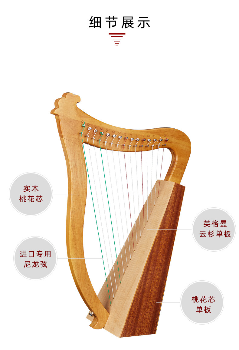 하프 19 현 15 톤 소형 하프 Lya 거문고 하프 리라 천사 악기 도매