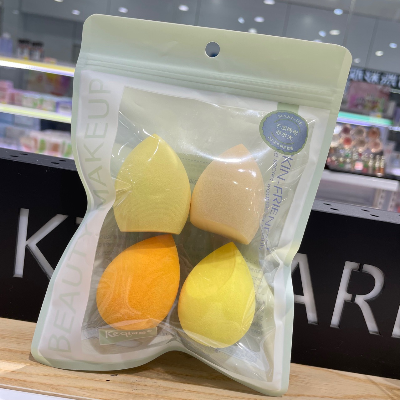 Keqi ~ net 레드 콤비네이션 뷰티 메이크업 에그 조롱박 파우더 퍼프 파운데이션 액체 쿠션 습식 및 건식 이중 사용 버블 워터 대형 4 팩스토어 가기