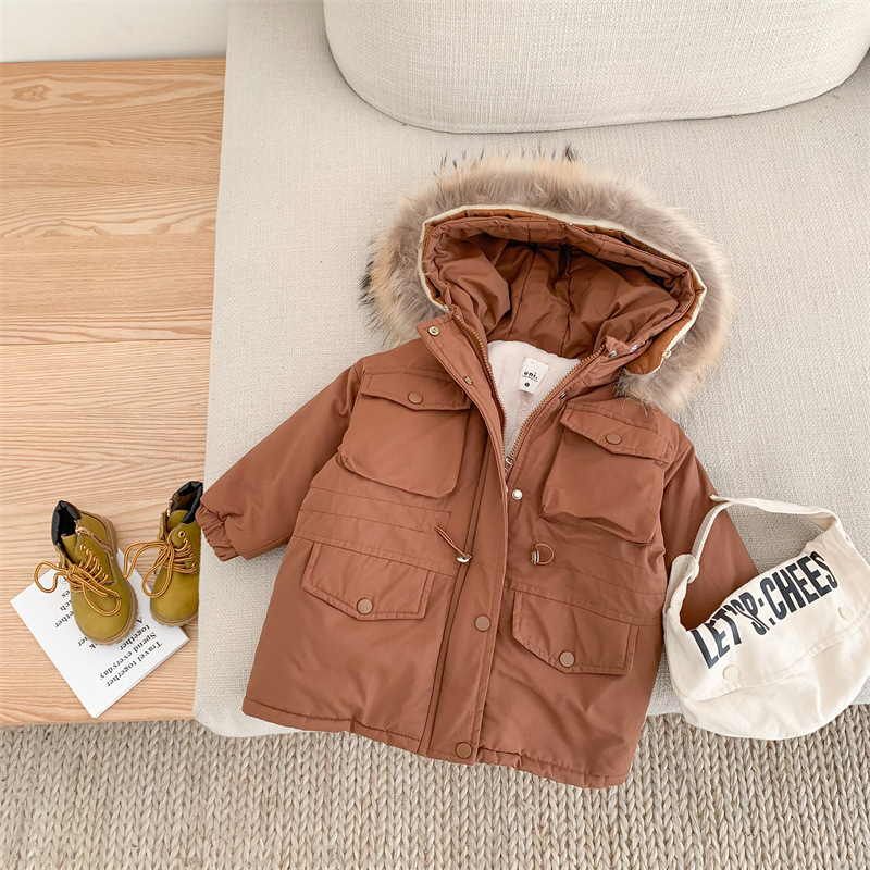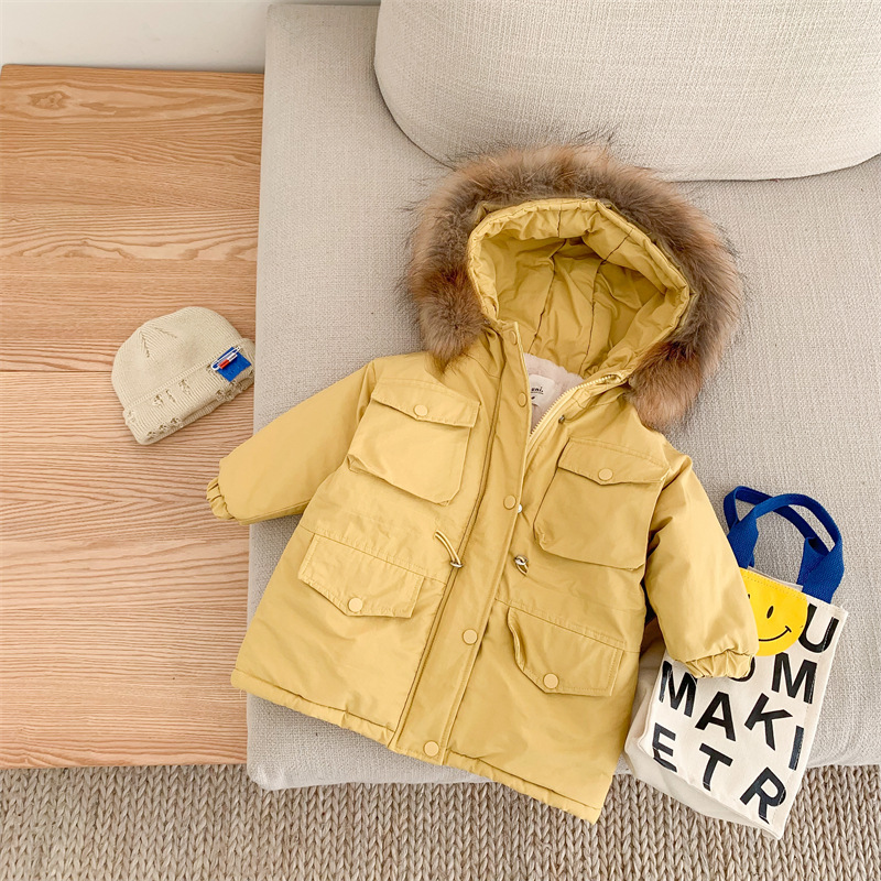 어린이 2021 겨울 새로운 한국 스타일 대형 모피 칼라 두꺼운 토끼 모피 클립 롱 트렌치 코트 유행 아동복스토어 가기