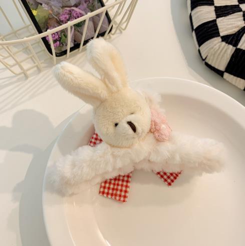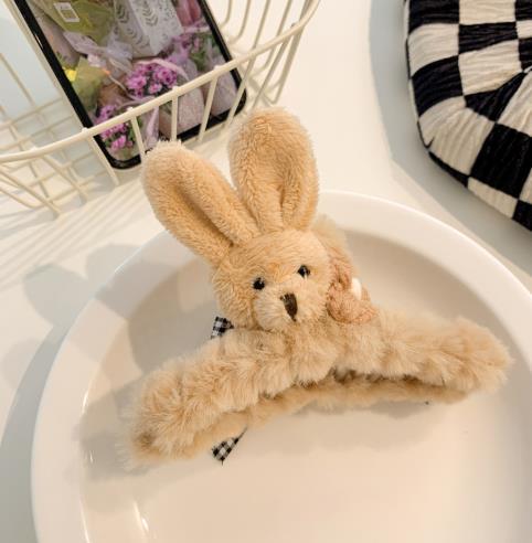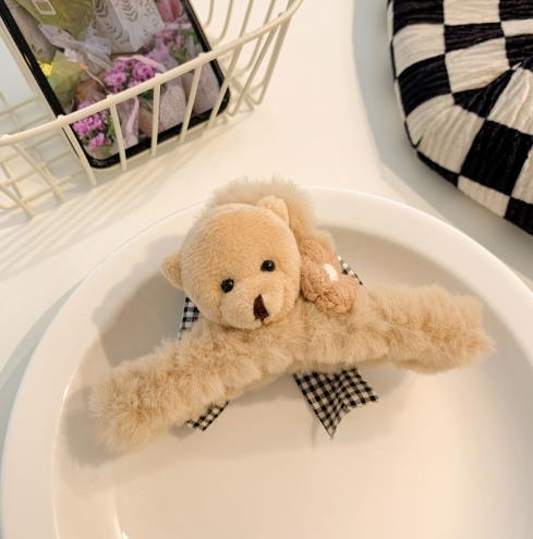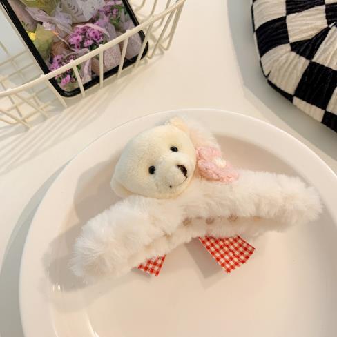 韩国ins可爱熊毛绒抓夹女可爱夹子头饰发夹秋冬气质后脑勺鲨鱼夹