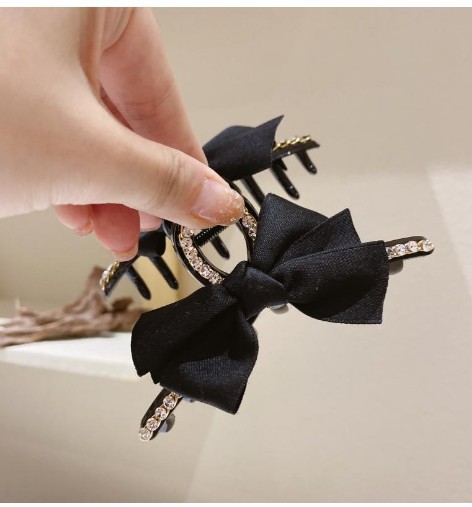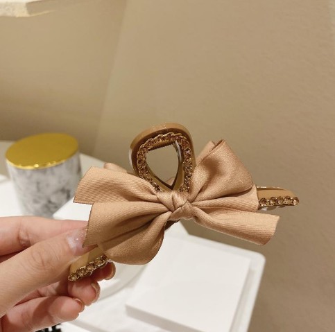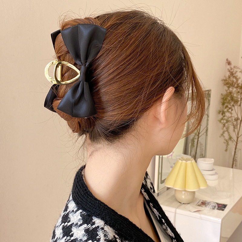 原创蕾丝缎面蝴蝶结发夹女成人高级感小香风后脑勺抓夹马尾发卡