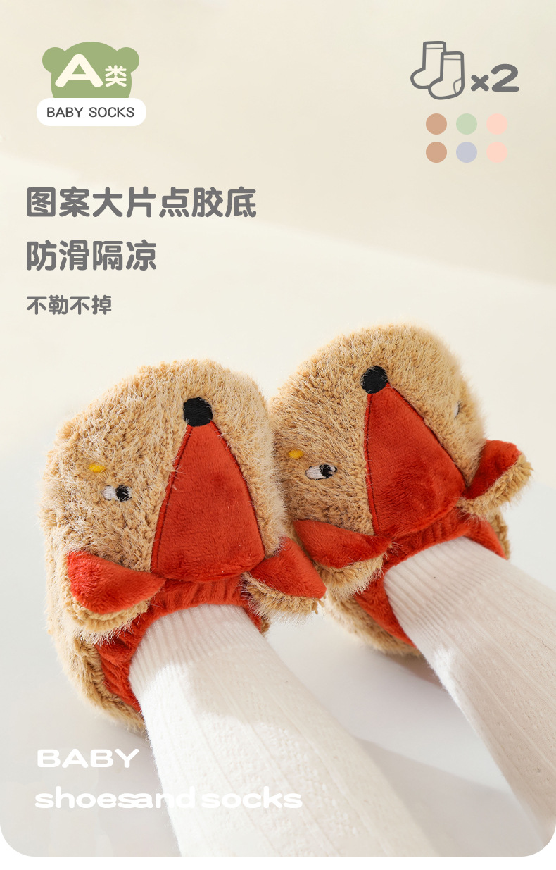Qicai 아기 바닥 양말 가을과 겨울 귀여운 어린이 유아 신발 양말 만화 미끄럼 방지 부드러운 발 아기 양말스토어 가기