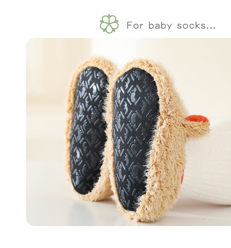 Qicai 아기 바닥 양말 가을과 겨울 귀여운 어린이 유아 신발 양말 만화 미끄럼 방지 부드러운 발 아기 양말