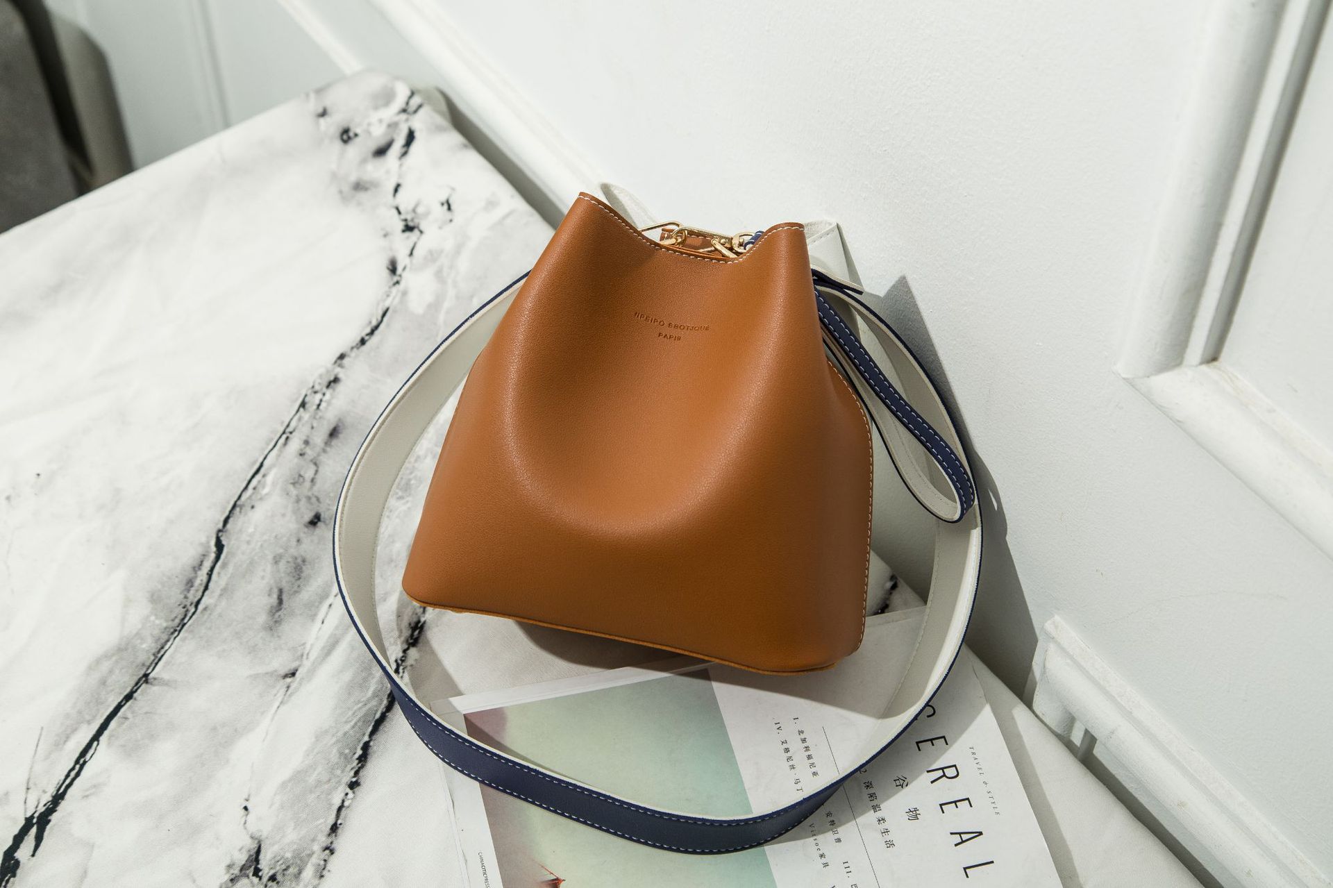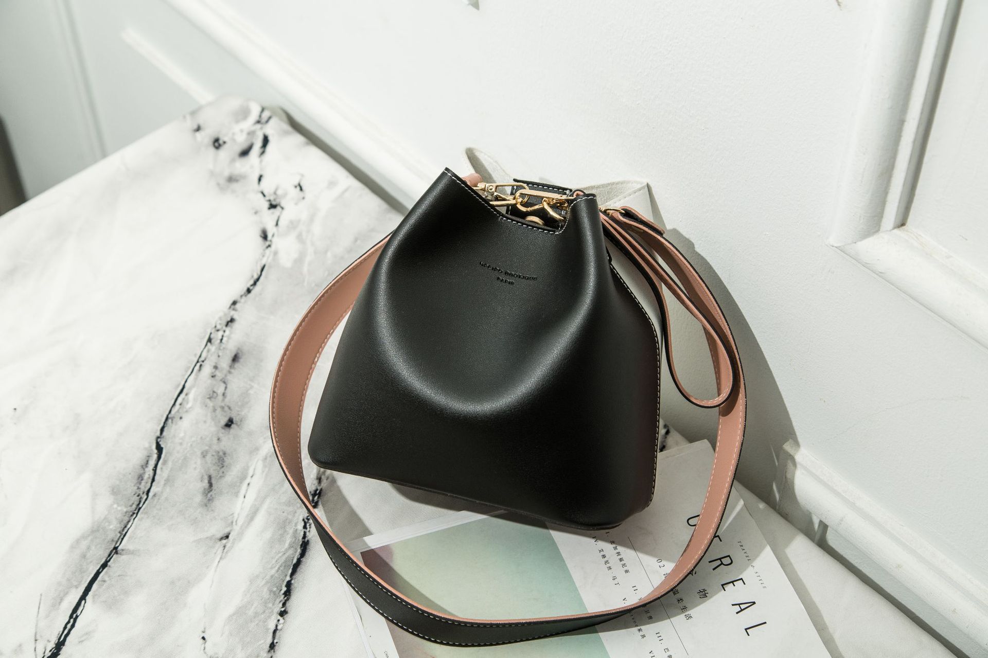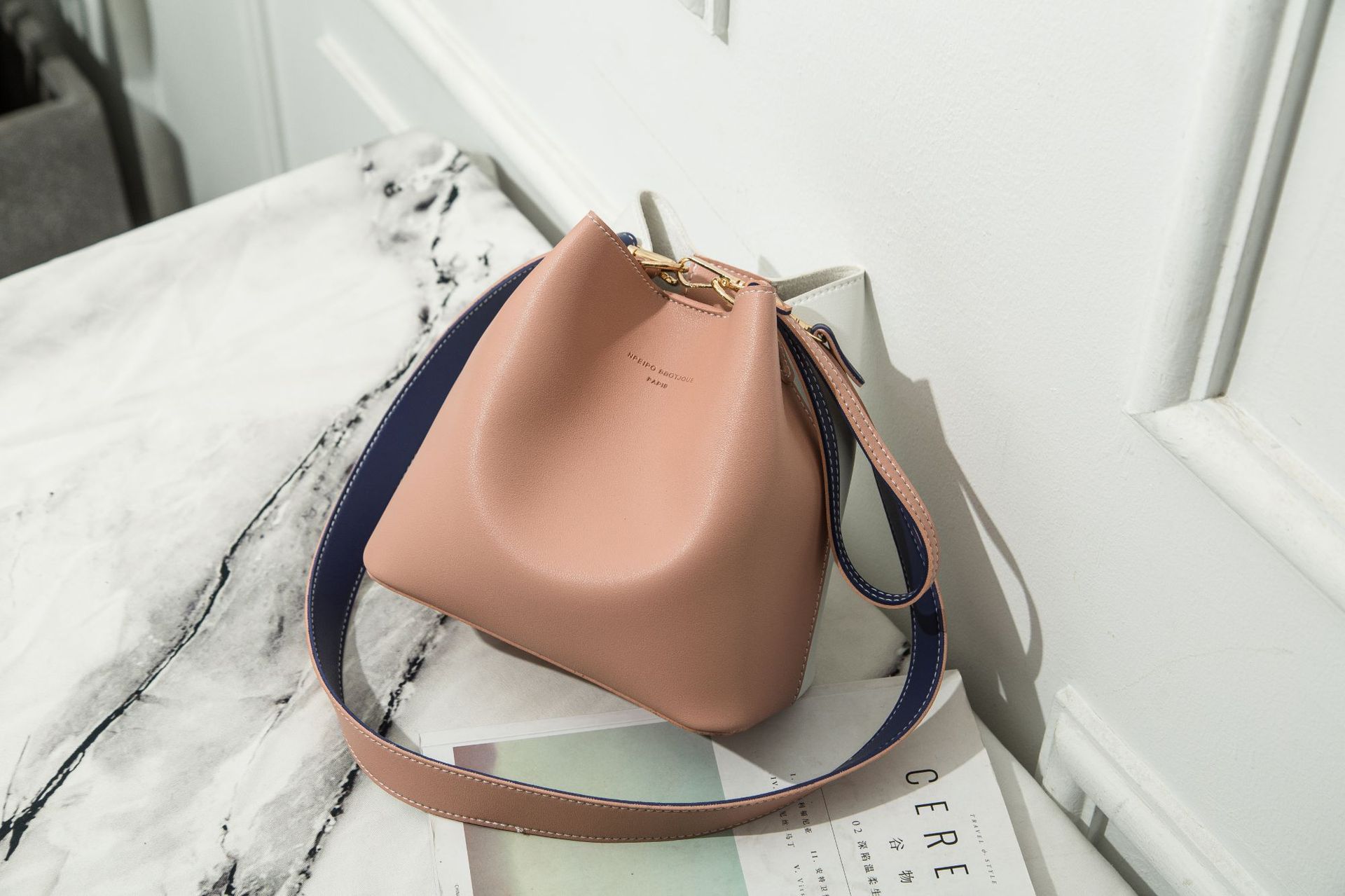 2026 한국판 버킷백 여성용 숄더 크로스백 치우치우 패키지 장식 와이드 숄더 스트랩 핸드백 다용도 패치워크스토어 가기