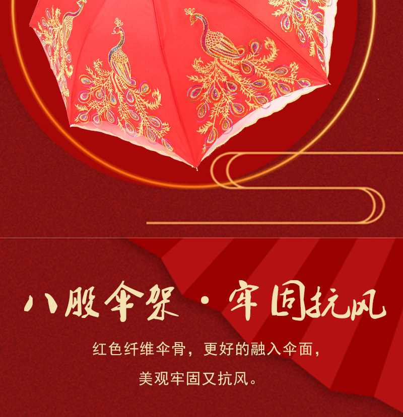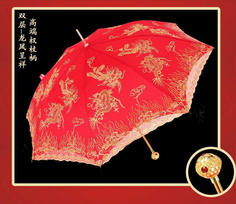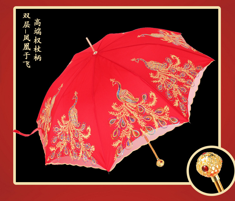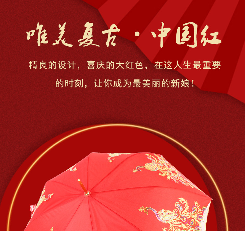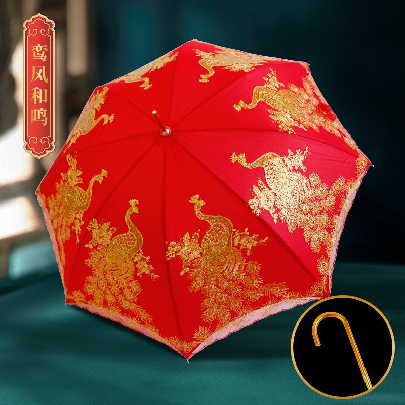 [신부전용] 중국식 웨딩 레드우산, 결혼식 우산, 신부를 위한 우산, 긴 손잡이 웨딩우산, 고급 웨딩우산스토어 가기