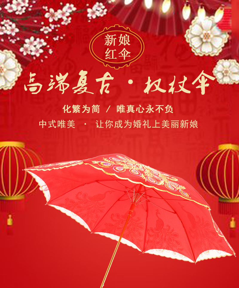 [신부전용] 중국식 웨딩 레드우산, 결혼식 우산, 신부를 위한 우산, 긴 손잡이 웨딩우산, 고급 웨딩우산