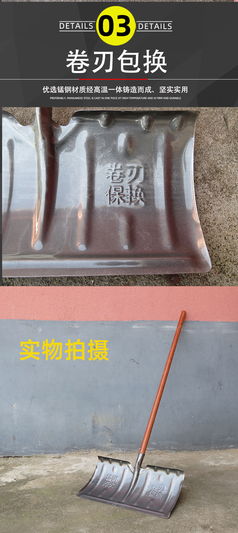 망간 강철 눈 삽 도로 제설 도구 넓어진 나무 손잡이 늘어난 눈 삽 제설 삽 제설 삽 눈 담금질