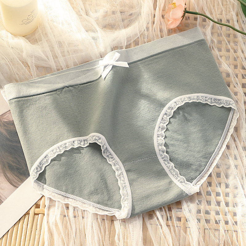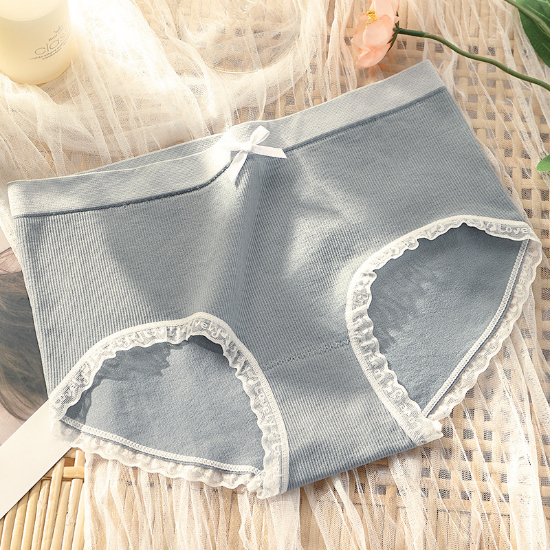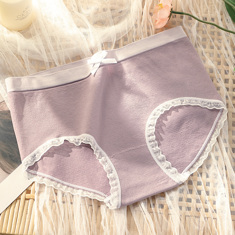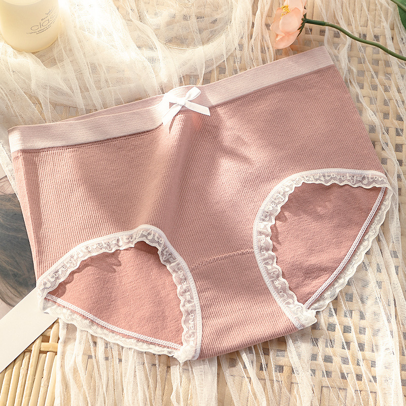 원활한 새로운 스타일 소녀의 속옷 순면 가랑이 레이스 중간 허리 원활한 일본식 여성 통기성 팬티