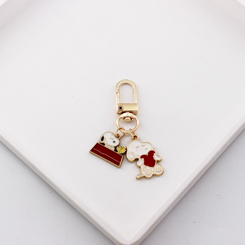 스누피 만화 열쇠 고리 여성 커플 귀여운 작은 선물 합금 열쇠 고리 교수형 열쇠 고리 책가방 펜던트스토어 가기