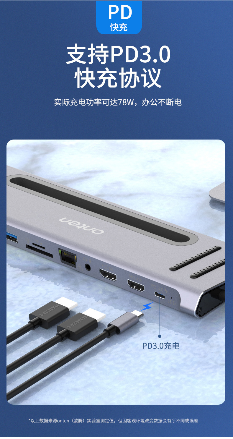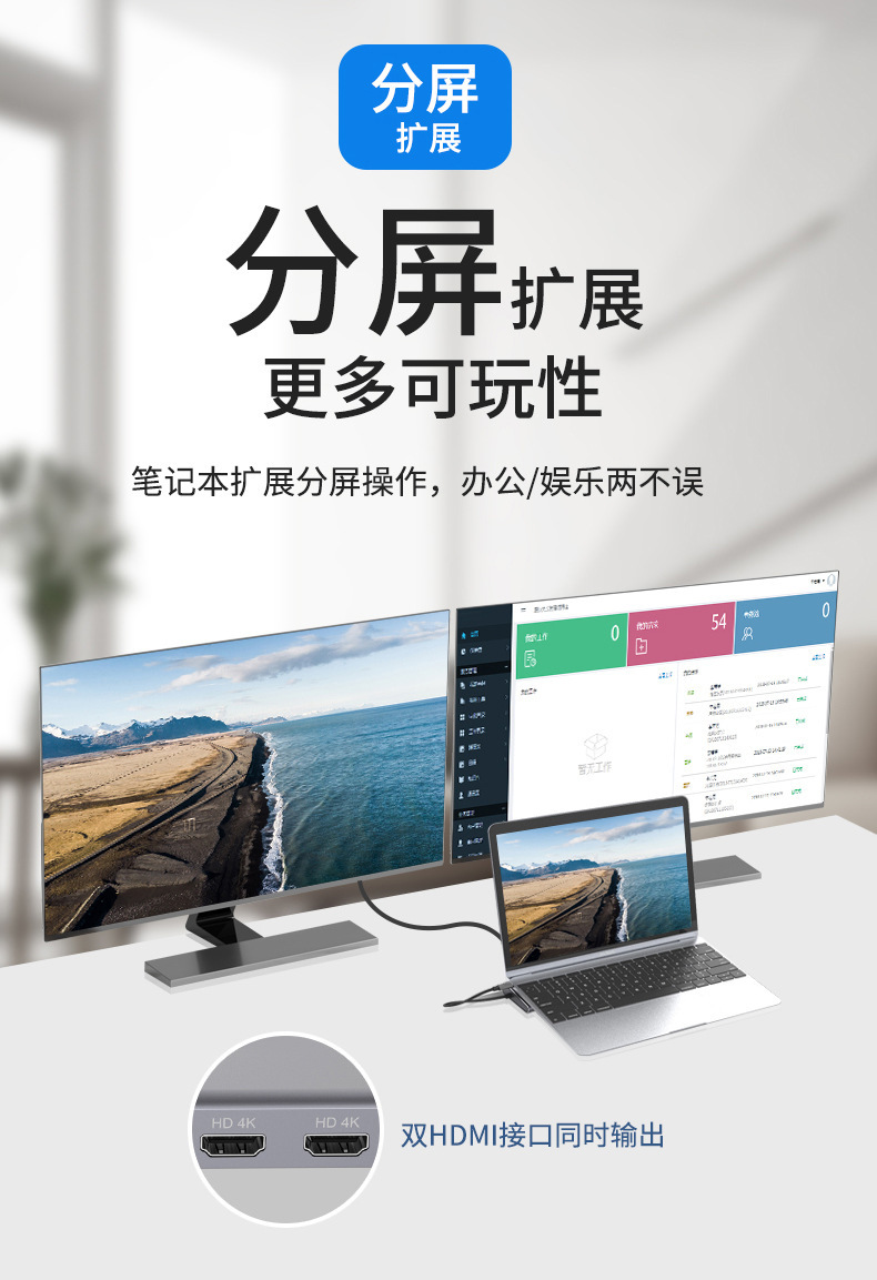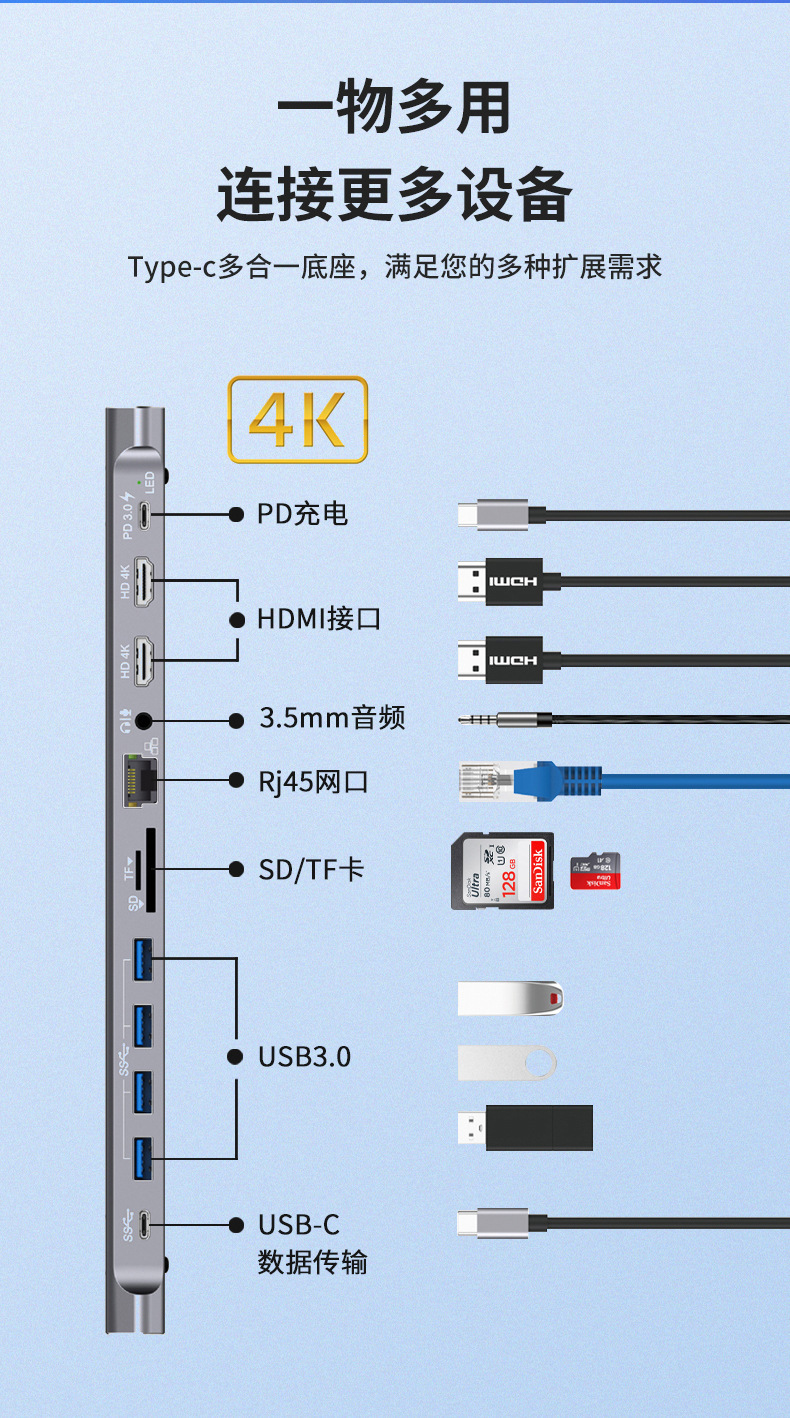 12in1多屏异显双hdmi千兆扩展坞 typec多功能usb笔记本底座拓展坞
