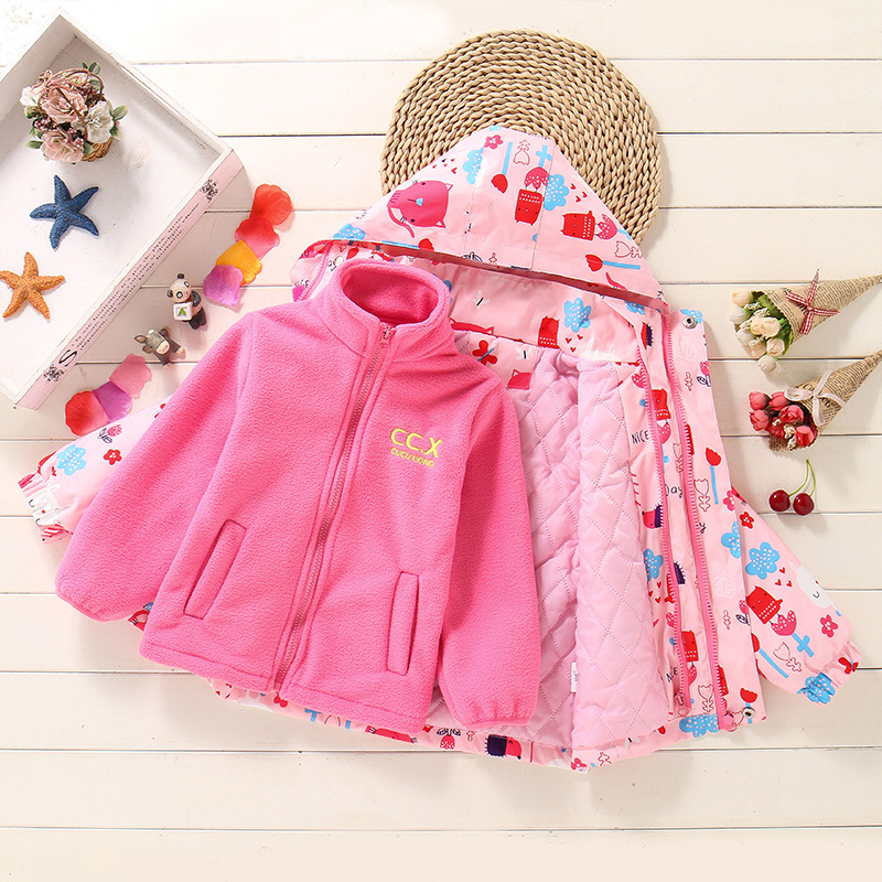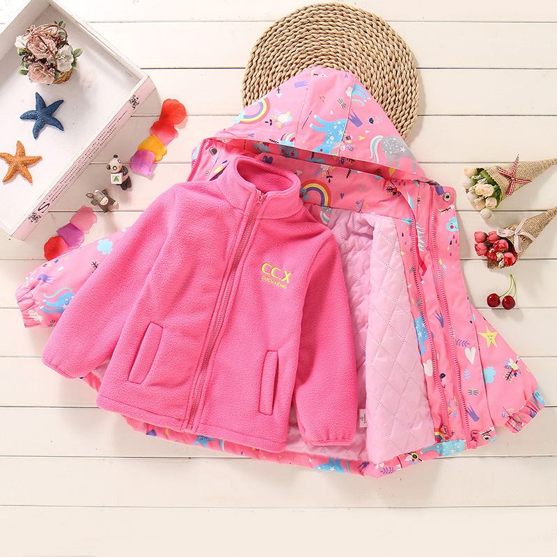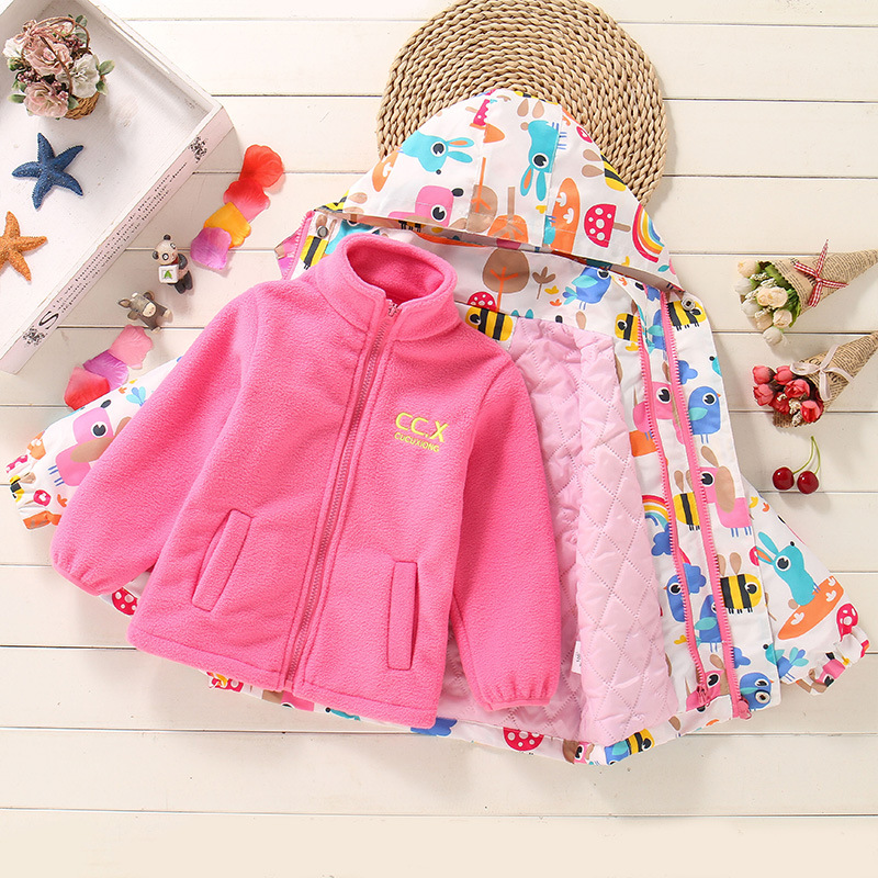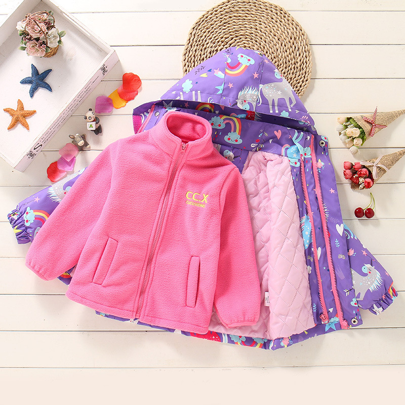 크로스보더 아동 러시 의류 겨울 새로운 스타일 면 코트 기모 플러스 면 중형 어린이 쓰리인원 여아 방수 코트 트렌디스토어 가기